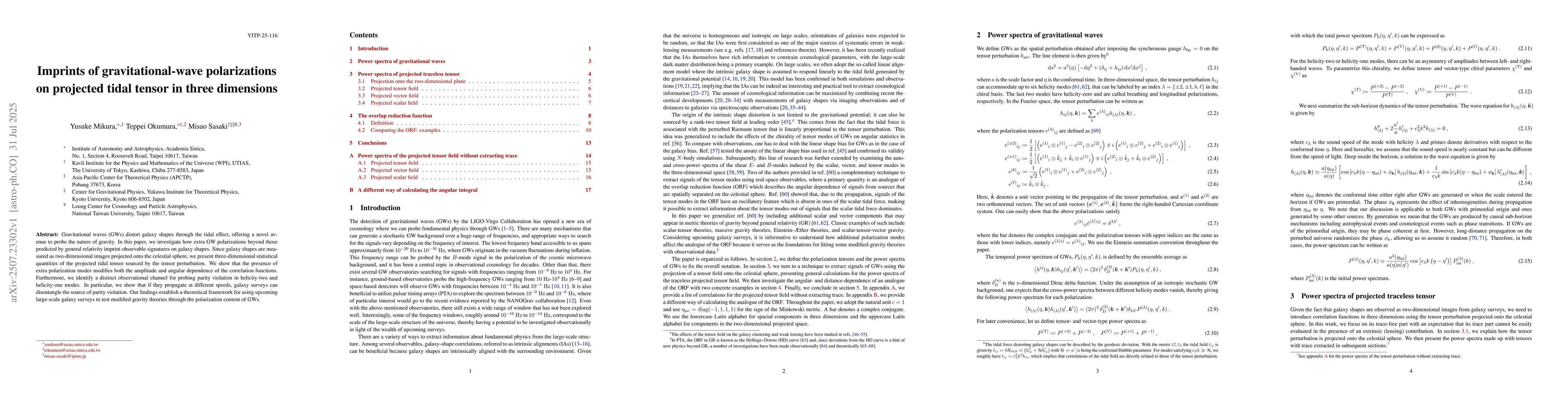 The paper introduces a comprehensive theoretical framework for analyzing three-dimensional correlation functions of projected tensor fields, including traceless components, and identifies distinct observational channels for probing parity violation in GW polarization modes.