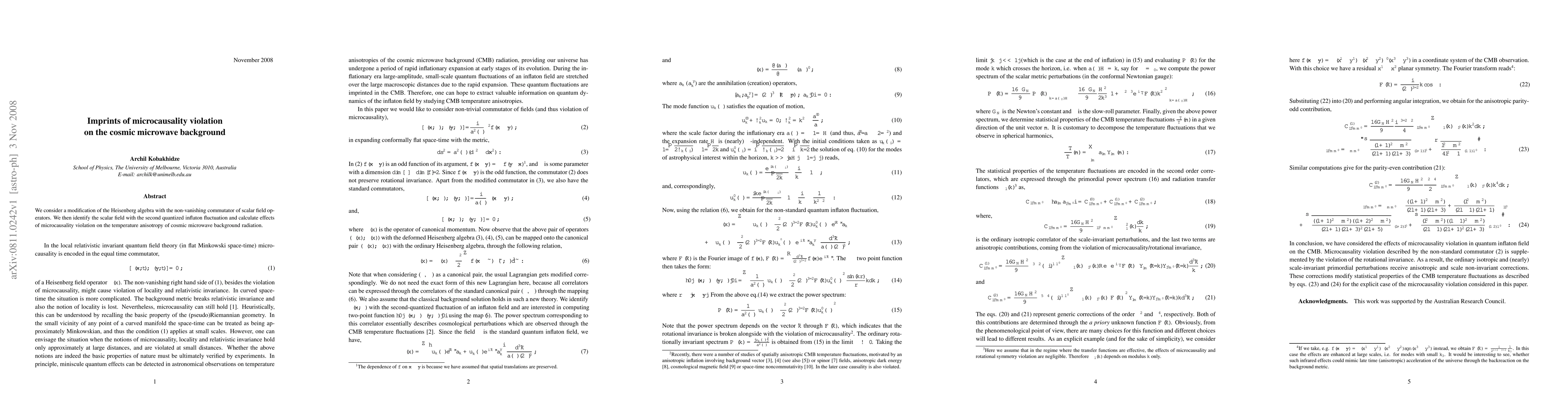 This work presents a novel approach to understanding the effects of microcausality violation on the CMB, providing new insights into the universe's evolution and large-scale structure.