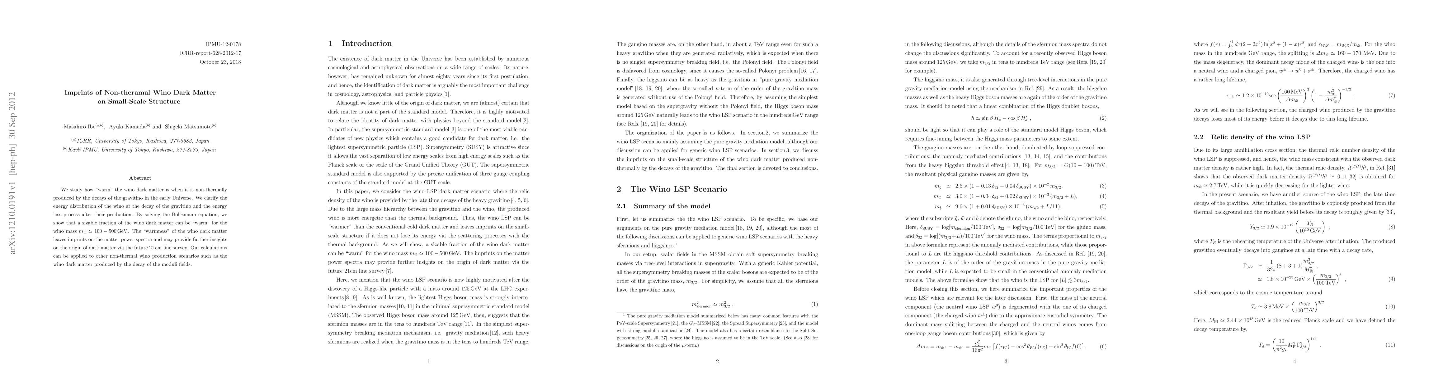 This paper investigates the "warmness" of non-thermally produced wino dark matter from gravitino decays in the early Universe, showing that a significant fraction can have masses between 100-500 GeV. The study highlights how this warm dark matter affects small-scale structure and may influence future 21 cm line surveys.