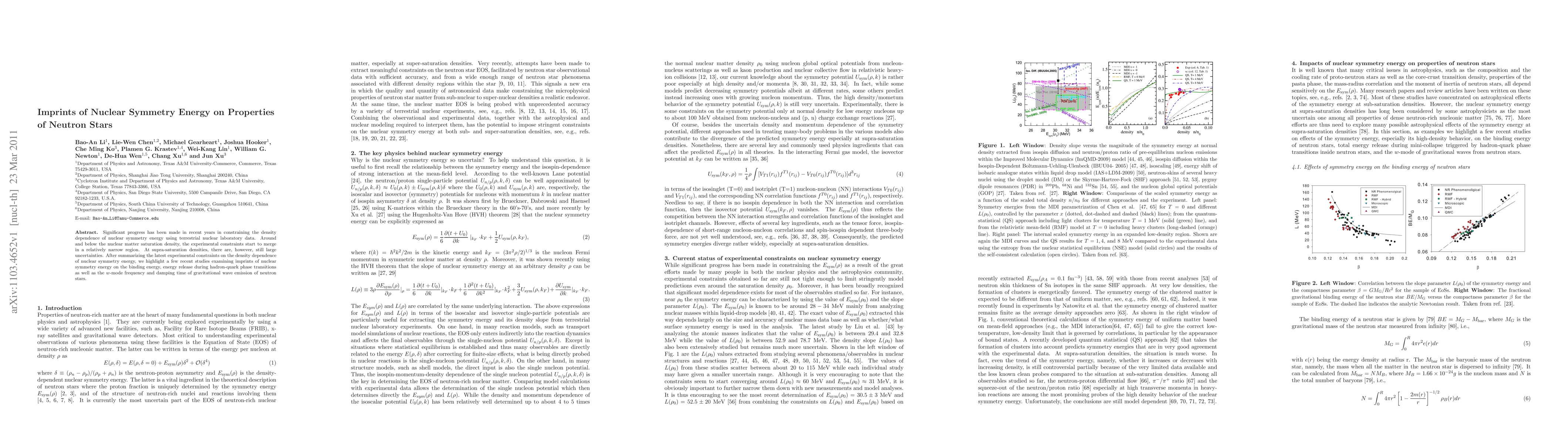 This paper reviews experimental constraints on nuclear symmetry energy and explores its effects on neutron star properties, including binding energy, energy release during phase transitions, and gravitational wave characteristics. Despite narrowing constraints at low densities, uncertainties remain at higher densities, impacting neutron star models.