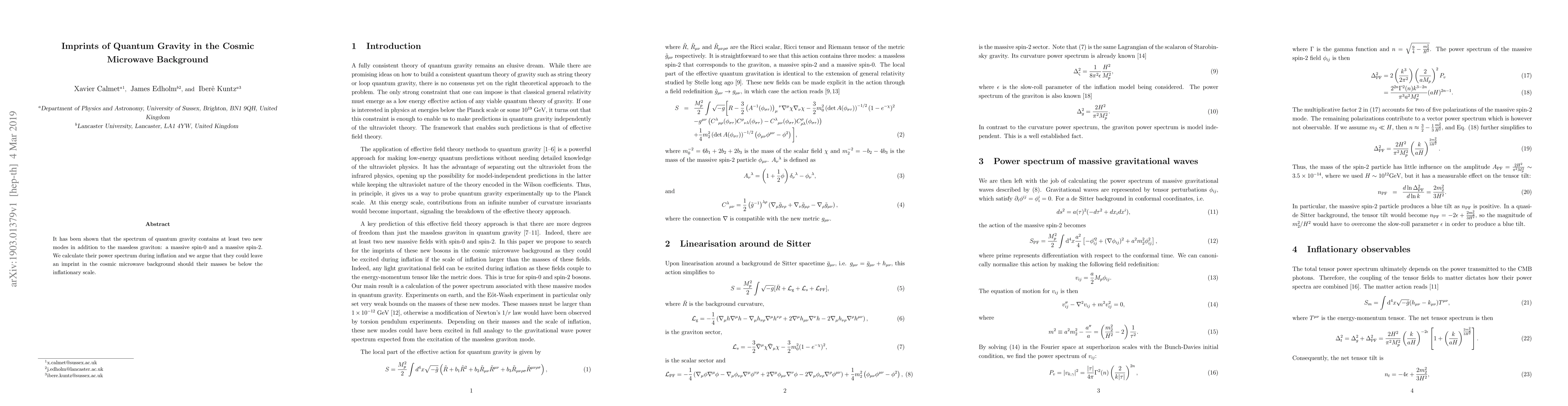 Researchers investigate the possibility of quantum gravity imprints in the cosmic microwave background, finding potential new modes that could leave an imprint if their masses are below the inflationary scale.