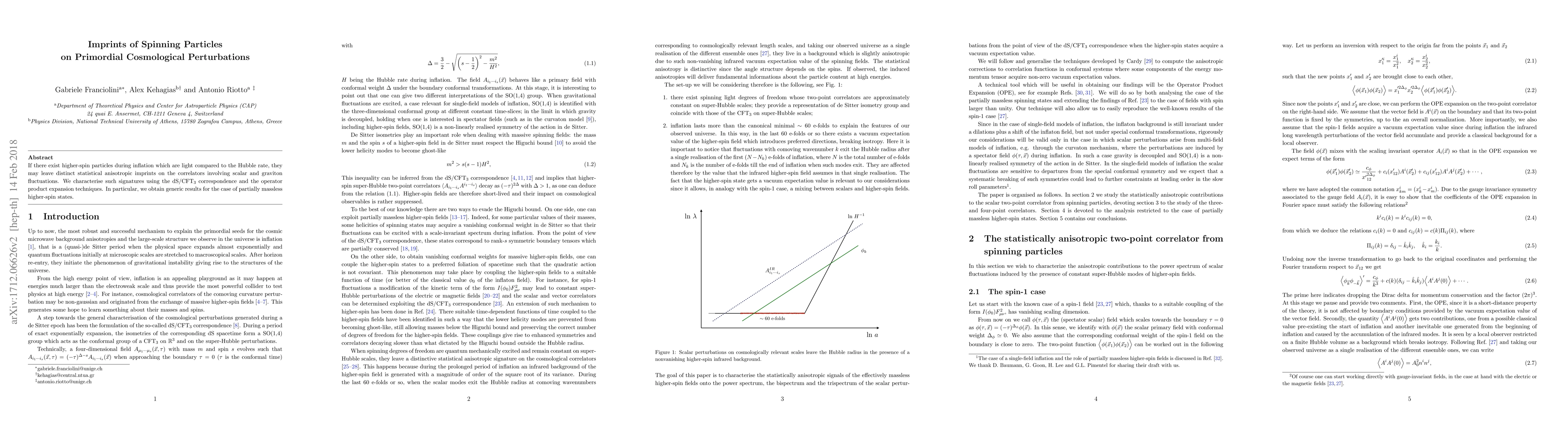 If there exist higher-spin particles during inflation which are light compared to the Hubble rate, they may leave distinct statistical anisotropic imprints on the correlators involving scalar and graviton fluctuations. We characterise such signatures using the dS/CFT$_3$ correspondence and the operator product expansion techniques. In particular, we obtain generic results for the case of partially massless higher-spin states.