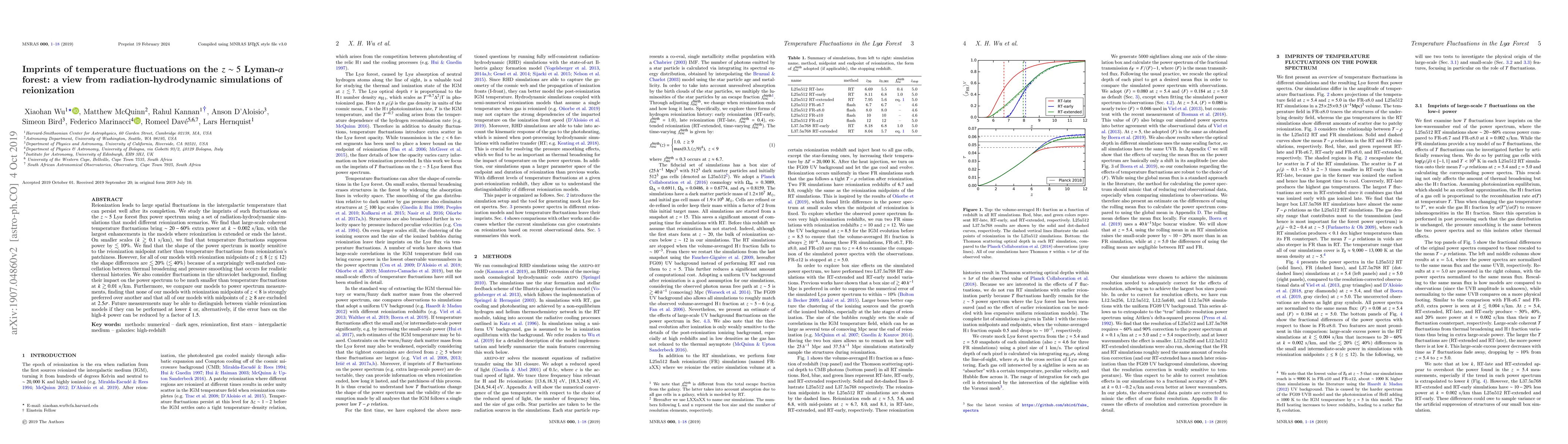 This paper investigates the impact of temperature fluctuations from reionization on the $z\sim5$ Lyman-$\alpha$ forest flux power spectrum using radiation-hydrodynamic simulations. It finds that large-scale temperature fluctuations enhance the power spectrum by $\sim20-60\%$, while smaller-scale fluctuations suppress it by $\lesssim10\%$.
