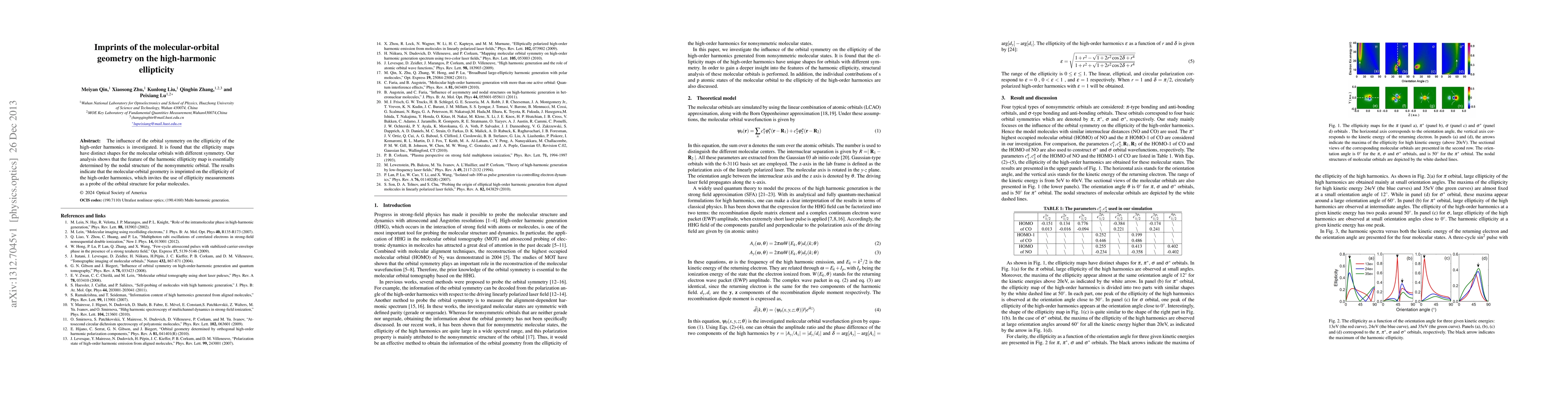 The influence of the orbital symmetry on the ellipticity of the high-order harmonics is investigated. It is found that the ellipticity maps have distinct shapes for the molecular orbital with different symmetry. Our analysis shows that the feature of the harmonic ellipticity map is essentially determined by the nodal structure of the nonsymmetric orbital. The results indicate that the molecular-orbital geometry is imprinted on the ellipticity of the high-order harmonics, which invites the use of ellipticity measurements as a probe of the orbital structure for polar molecules.