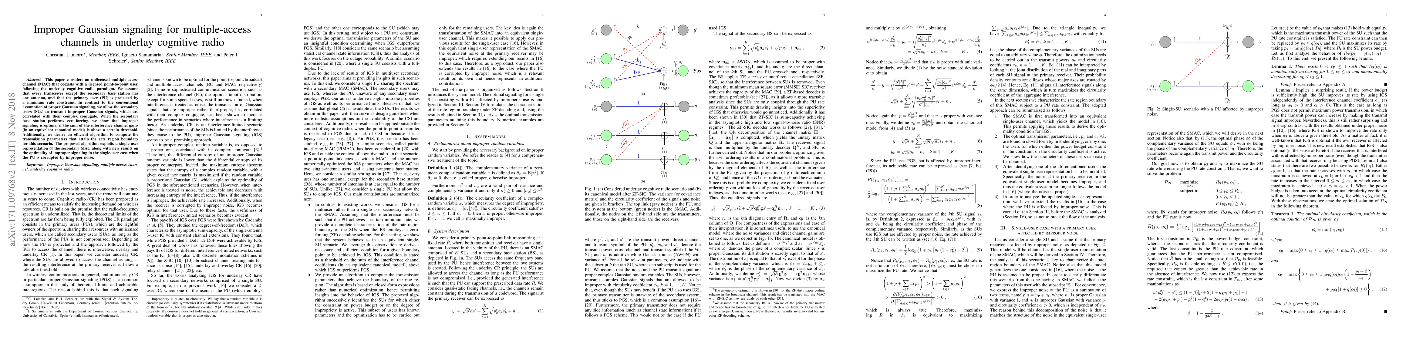 This paper considers an unlicensed multiple-access channel (MAC) that coexists with a licensed point-to-point user, following the underlay cognitive radio paradigm. We assume that every transceiver except the secondary base station has one antenna, and that the primary user (PU) is protected by a minimum rate constraint. In contrast to the conventional assumption of proper Gaussian signaling, we allow the secondary users (SUs) to transmit improper Gaussian signals, which are correlated with their complex conjugate. When the secondary base station performs zero-forcing, we show that improper signaling is optimal if the sum of the interference channel gains (in an equivalent canonical model) is above a certain threshold. Additionally, we derive an efficient algorithm to compute the transmission parameters that attain the rate region boundary for this scenario. The proposed algorithm exploits a single-user representation of the secondary MAC along with new results on the optimality of improper signaling in the single-user case when the PU is corrupted by improper noise.