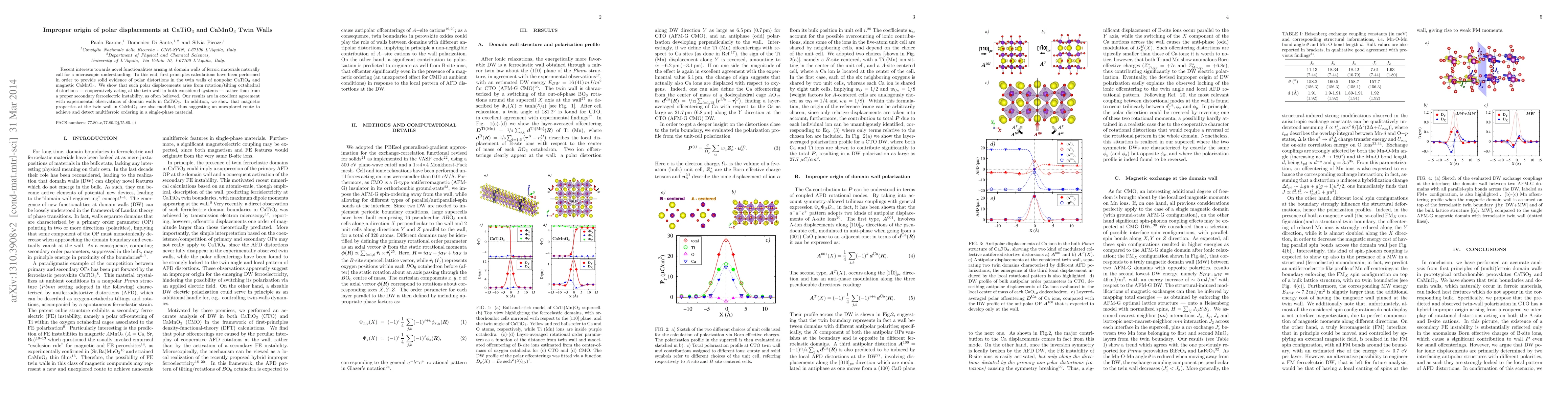 Recent interests towards novel functionalities arising at domain walls of ferroic materials naturally call for a microscopic understanding. To this end, first-principles calculations have been performed in order to provide solid evidence of ferroelectricity in the twin walls of nonpolar CaTiO3 and magnetic CaMnO3. We show that ferroelectricity arises from rotation/tilting octahedral distortions --- cooperatively acting at the twin wall in both considered systems --- rather than from a proper secondary ferroelectric instability, as often believed. Our results are in excellent agreement with experimental observations of domain walls in CaTiO3. In addition, we show that magnetic properties at the twin wall in CaMnO3 are also modified, thus suggesting an unexplored route to achieve and detect multiferroic ordering in a single-phase material.