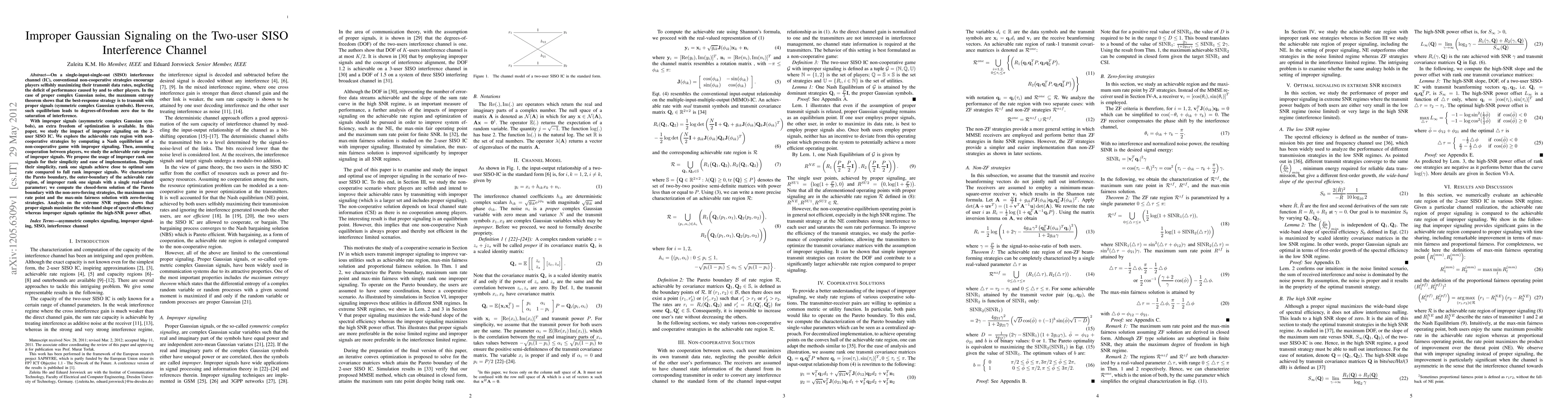 The paper investigates how improper signaling in a two-user SISO interference channel can improve performance compared to proper signaling, achieving close to optimal sum rates with simplified signals.