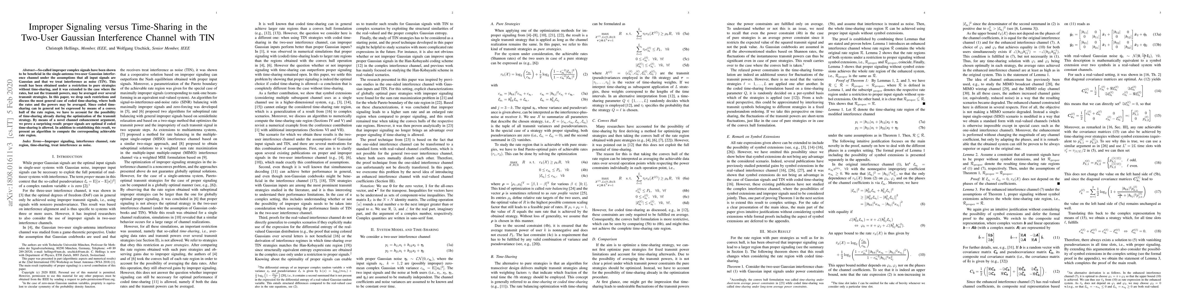 This paper investigates the two-user Gaussian interference channel under TIN, comparing improper complex signals with time-sharing strategies. It finds that proper signals are optimal when both rates and powers can be averaged through coded time-sharing, contrary to previous results that only allowed for averaging rates.