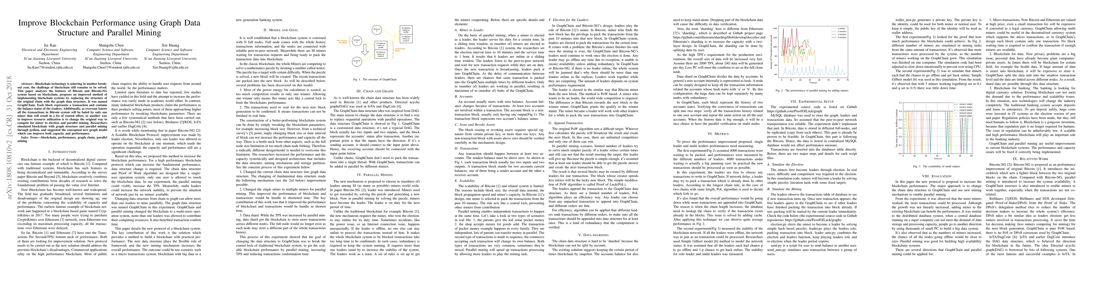 Blockchain technology is ushering in another break-out year, the challenge of blockchain still remains to be solved. This paper analyzes the features of Bitcoin and Bitcoin-NG system based on blockchain, proposes an improved method of implementing blockchain systems by replacing the structure of the original chain with the graph data structure. It was named GraphChain. Each block represents a transaction and contains the balance status of the traders. Additionally, as everyone knows all the transactions in Bitcoin system will be baled by only one miner that will result in a lot of wasted effort, so another way to improve resource utilization is to change the original way to compete for miner to election and parallel mining. Researchers simulated blockchain with graph structure and parallel mining through python, and suggested the conceptual new graph model which can improve both capacity and performance.