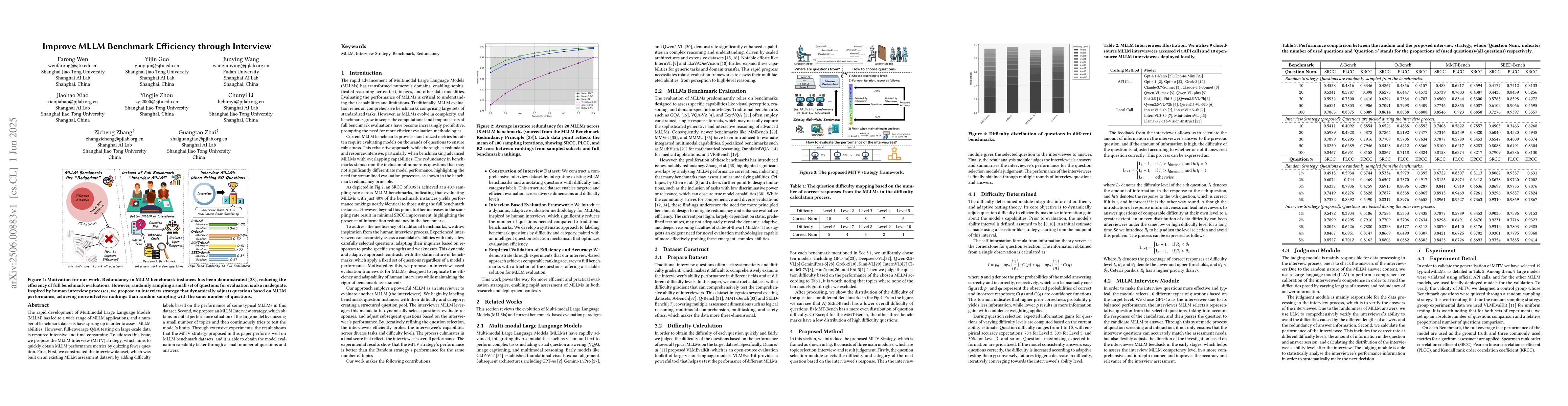The research proposes the MLLM Interview (MITV) strategy, constructed on an existing MLLM assessment dataset by adding difficulty labels based on typical MLLM performance. The MITV strategy quizzes fewer questions to quickly assess MLLM performance metrics and model limits.