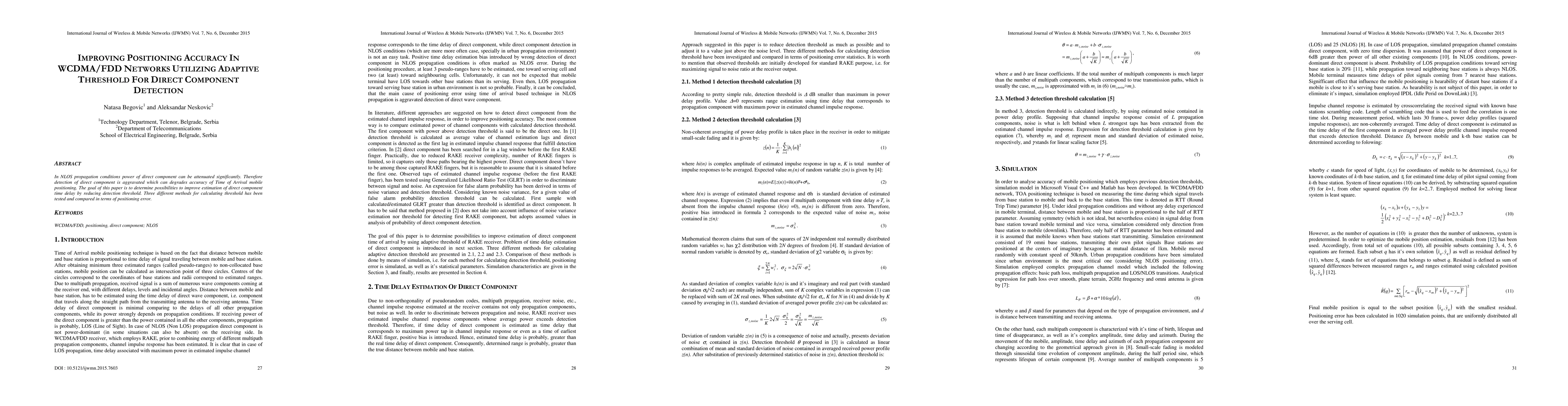 In NLOS propagation conditions power of direct component can be attenuated significantly. Therefore detection of direct component is aggravated which can degrades accuracy of Time of Arrival mobile positioning. The goal of this paper is to determine possibilities to improve estimation of direct component time delay by reducing detection threshold. Three different methods for calculating threshold has been tested and compared in terms of positioning error.