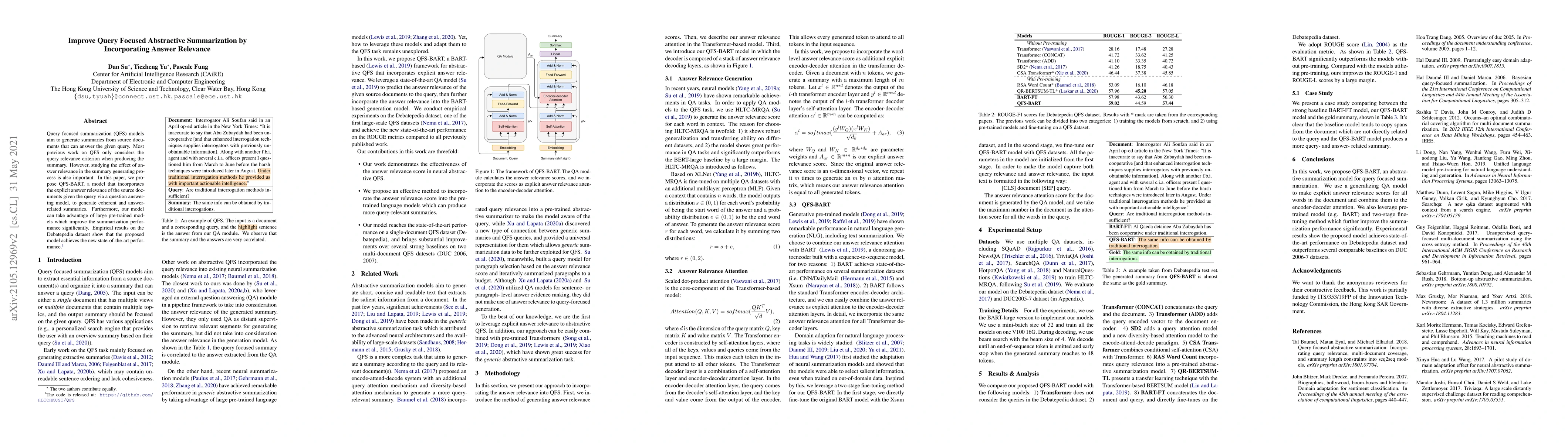 This paper introduces QFS-BART, a summarization model that enhances query-focused summarization by integrating answer relevance through a question-answering mechanism, achieving state-of-the-art performance on the Debatepedia dataset. The model leverages large pre-trained models to generate coherent and query-relevant summaries.