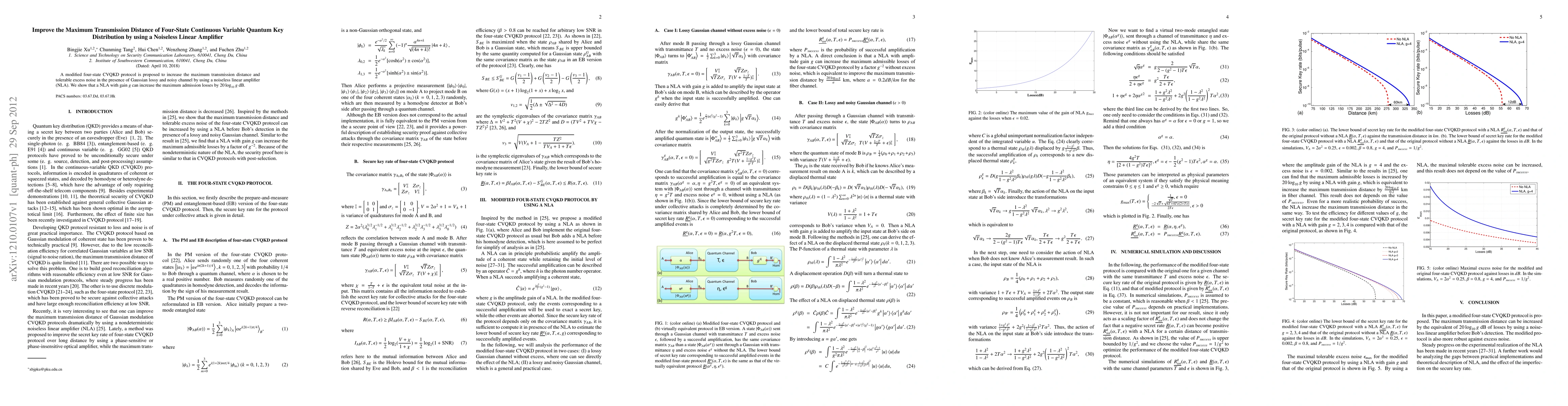 This paper proposes a modified four-state continuous variable quantum key distribution (CVQKD) protocol that employs a noiseless linear amplifier (NLA) to enhance maximum transmission distance and tolerable excess noise. The NLA can increase the maximum allowable channel losses by 20log(g) dB, where g is the amplifier's amplitude gain.