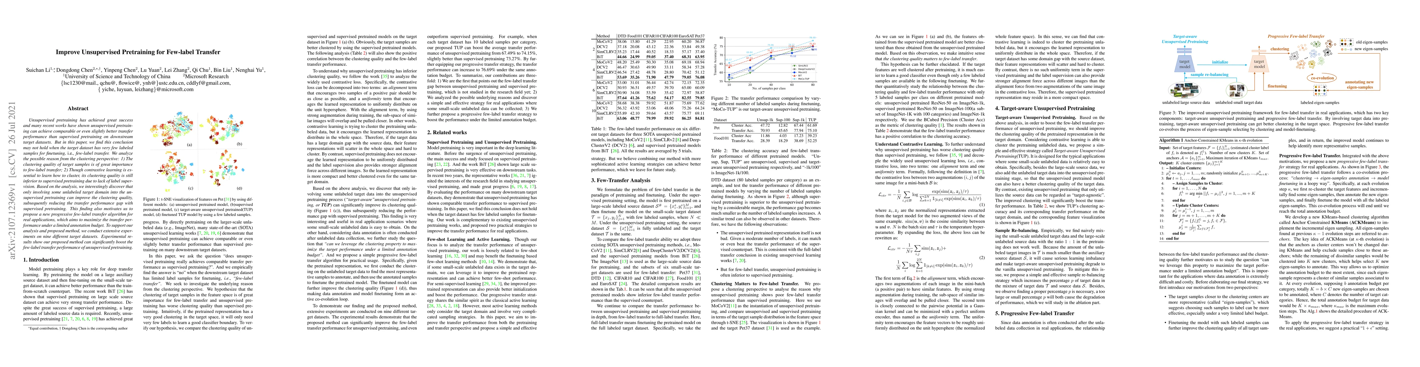 This paper investigates the limitations of unsupervised pretraining in few-label transfer scenarios and finds that incorporating some unlabeled target domain data during unsupervised pretraining improves clustering quality and reduces performance gaps compared to supervised pretraining. The authors propose a new progressive few-label transfer algorithm and demonstrate its effectiveness through extensive experiments on nine target datasets.