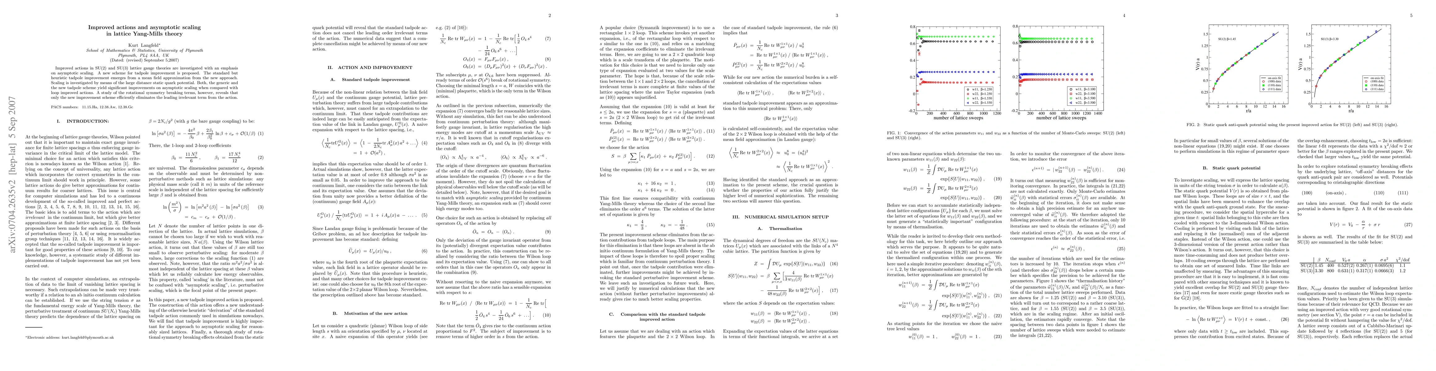 Improved actions in SU(2) and SU(3) lattice gauge theories are investigated with an emphasis on asymptotic scaling. A new scheme for tadpole improvement is proposed. The standard but heuristic tadpole improvement emerges from a mean field approximation from the new approach. Scaling is investigated by means of the large distance static quark potential. Both, the generic and the new tadpole scheme yield significant improvements on asymptotic scaling when compared with loop improved actions. A study of the rotational symmetry breaking terms, however, reveals that only the new improvement scheme efficiently eliminates the leading irrelevant term from the action.