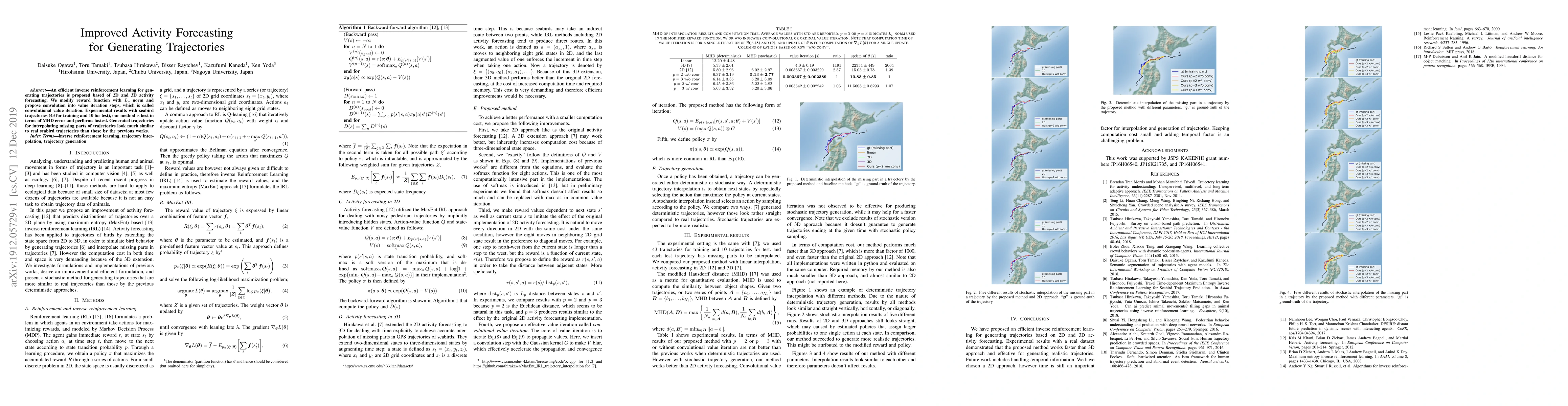 This paper proposes an efficient inverse reinforcement learning method for generating trajectories through improved 2D and 3D activity forecasting. The method uses a modified reward function with $L_p$ norm and convolutional value iteration, outperforming previous methods in terms of mean Hausdorff distance error and speed.
