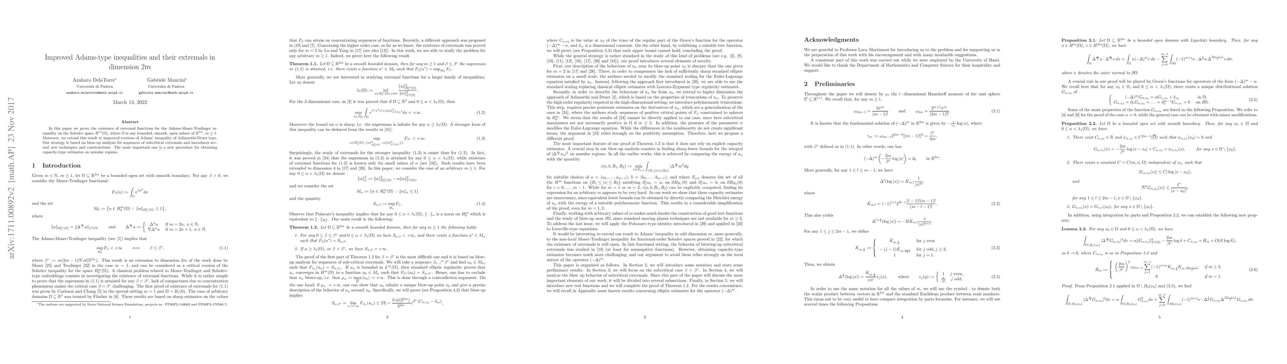 This paper establishes the existence of extremal functions for the Adams-Moser-Trudinger inequality in the Sobolev space $H^{m}(\Omega)$, where $\Omega$ is a smooth, bounded subset of $\mathbb{R}^{2m}$. It also extends these results to improved Adams' inequalities, employing novel techniques including a new method for capacity-type estimates on annular regions.