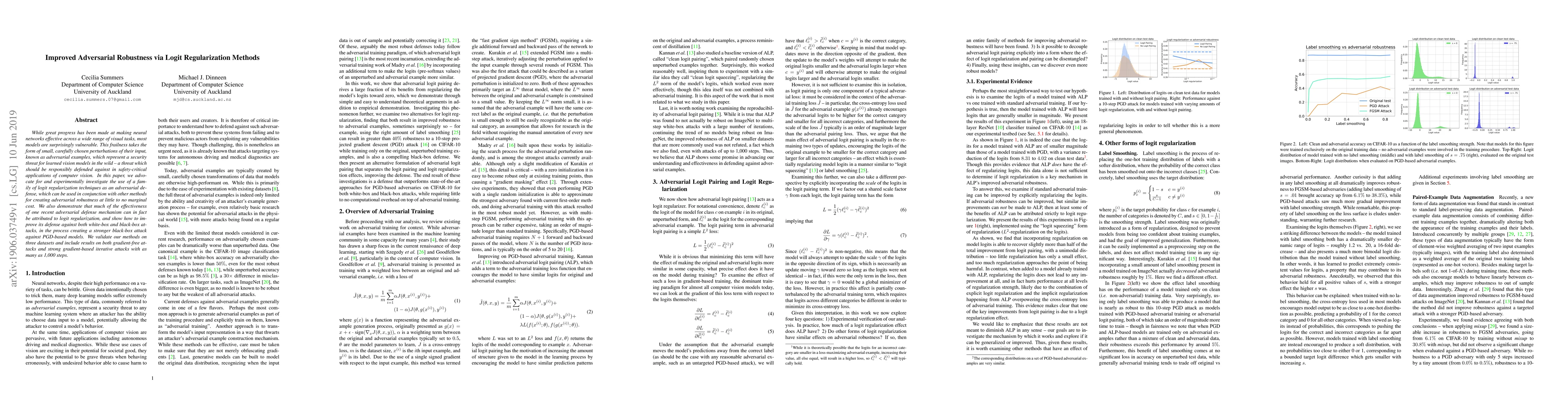 This paper explores the use of logit regularization techniques to enhance the adversarial robustness of neural networks, demonstrating their effectiveness against both white-box and black-box attacks with minimal additional cost. The authors show that these methods can improve existing defense mechanisms and validate their approach across multiple datasets.