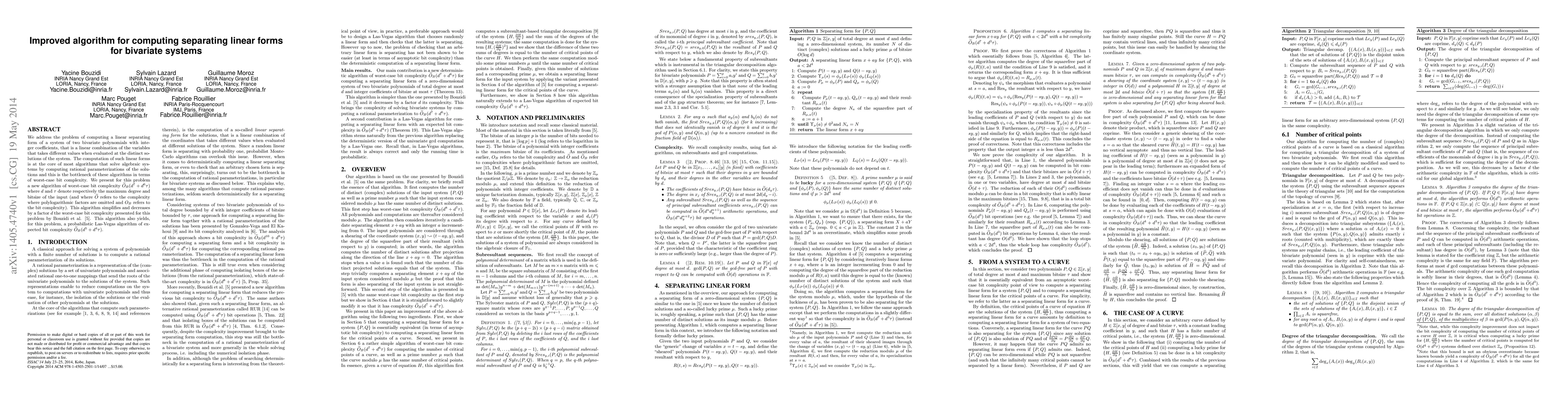This paper presents a new algorithm for computing separating linear forms for bivariate polynomial systems, improving the worst-case bit complexity to $\sOB(d^7+d^6\tau)$ and providing a probabilistic Las-Vegas algorithm with expected complexity $\sOB(d^5+d^4\tau)$. This reduces the complexity by a factor of $d$ compared to previous methods.