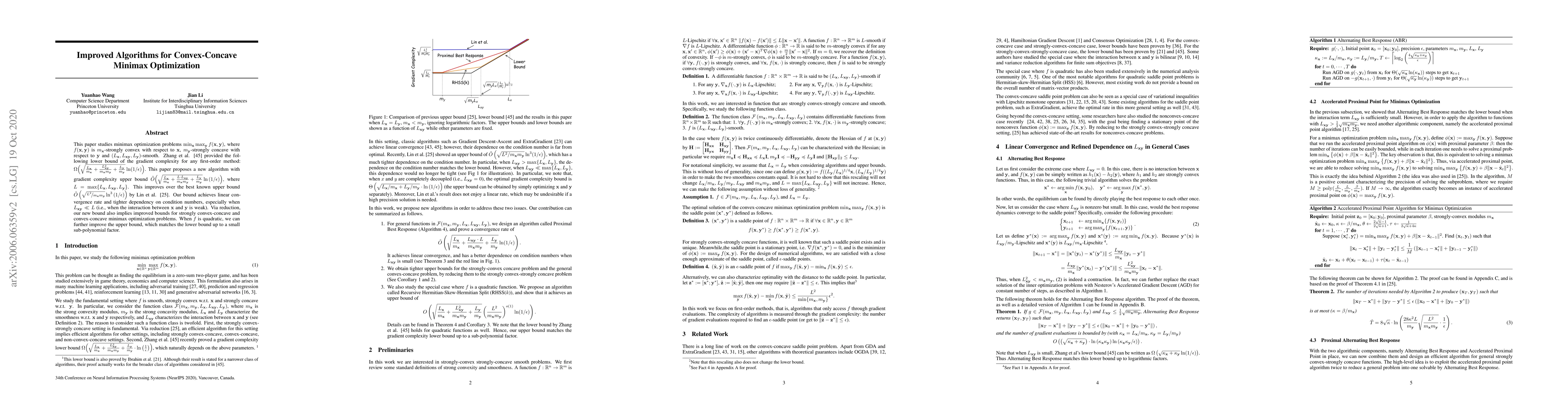 This paper improves algorithms for convex-concave minimax optimization by proposing a new method with faster convergence rate and tighter bounds on condition numbers.