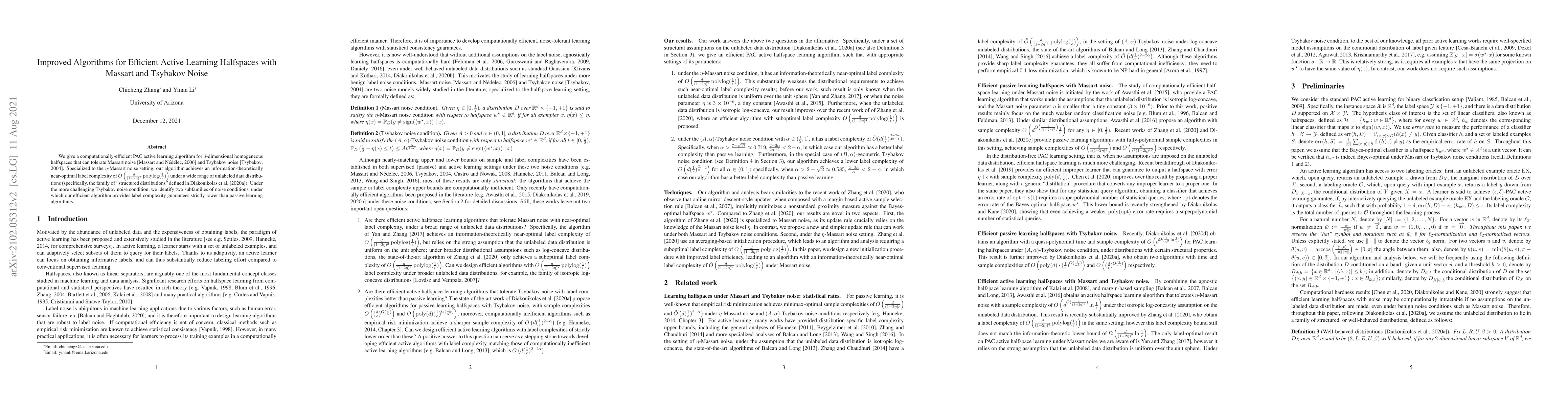 This paper presents a computationally-efficient active learning algorithm for $d$-dimensional halfspaces that can handle Massart and Tsybakov noise. The algorithm achieves near-optimal label complexity under structured data distributions and outperforms passive learning under certain Tsybakov noise conditions.