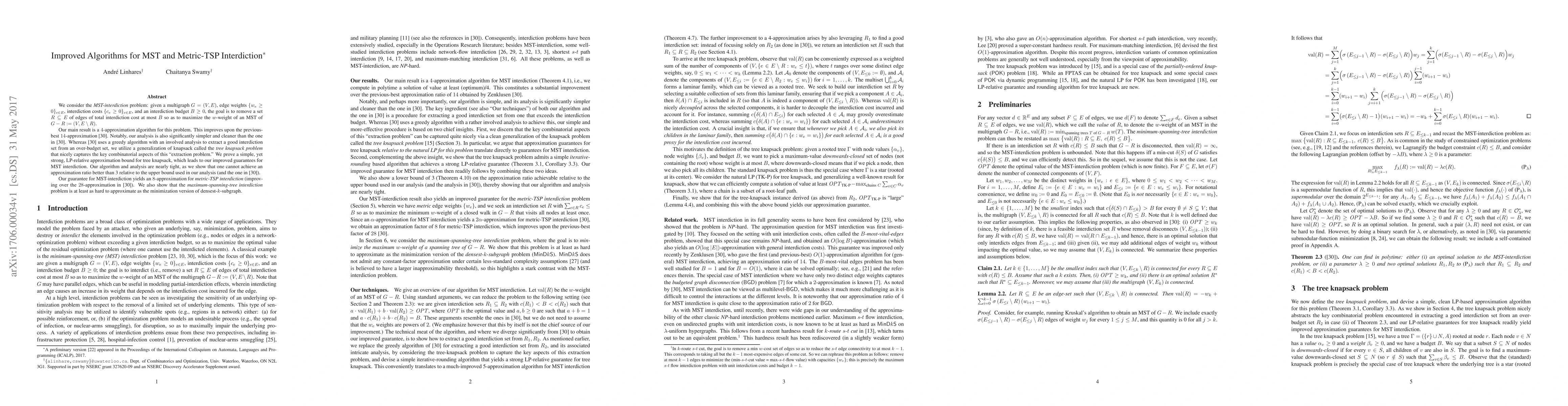 A new algorithm improves approximation ratios for MST (Minimum Spanning Tree) interdiction to 4, and for metric-TSP interdiction to 8, solving a problem that was previously approximated at 14.