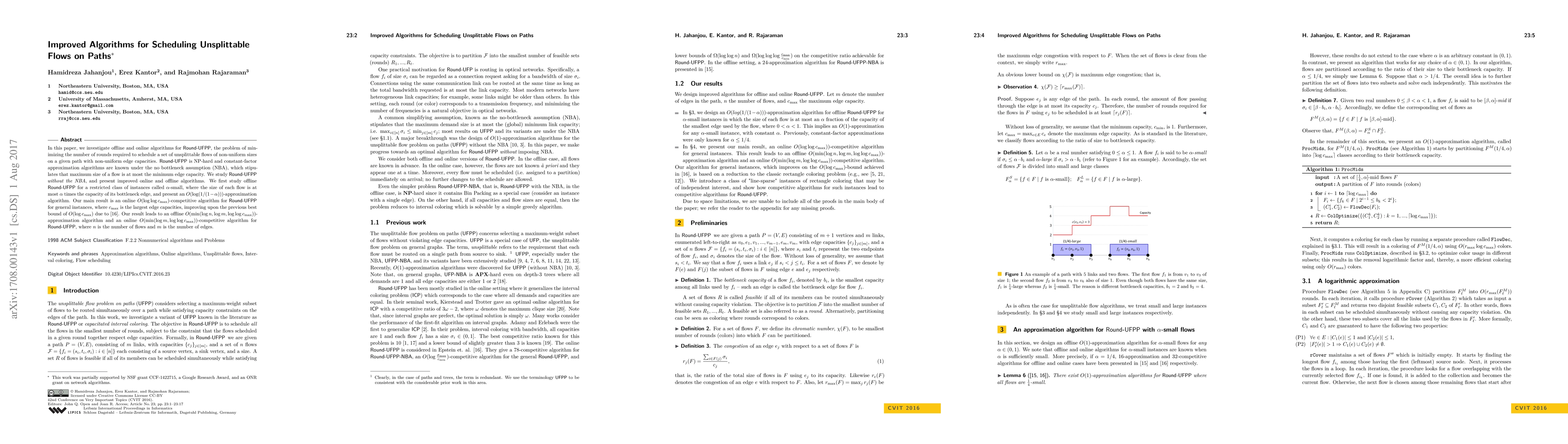 In this paper, we investigate offline and online algorithms for rufpp, the problem of minimizing the number of rounds required to schedule a set of unsplittable flows of non-uniform sizes on a given path with non-uniform edge capacities. rufpp is NP-hard and constant-factor approximation algorithms are known under the no bottleneck assumption (NBA), which stipulates that maximum size of a flow is at most the minimum edge capacity. We study rufpp without the NBA, and present improved online and offline algorithms. We first study offline rufpp for a restricted class of instances called $\alpha$-small, where the size of each flow is at most $\alpha$ times the capacity of its bottleneck edge, and present an $O(\log(1/(1-\alpha)))$-approximation algorithm. Our main result is an online $O(\log\log c_{\max})$-competitive algorithm for rufpp for general instances, where $c_{\max}$ is the largest edge capacities, improving upon the previous best bound of $O(\log c_{\max})$ due to Epstein et al. Our result leads to an offline $O(\min(\log n, \log m, \log\log c_{\max}))$-approximation algorithm and an online $O(\min(\log m, \log\log c_{\max}))$-competitive algorithm for rufpp, where $n$ is the number of flows and $m$ is the number of edges.