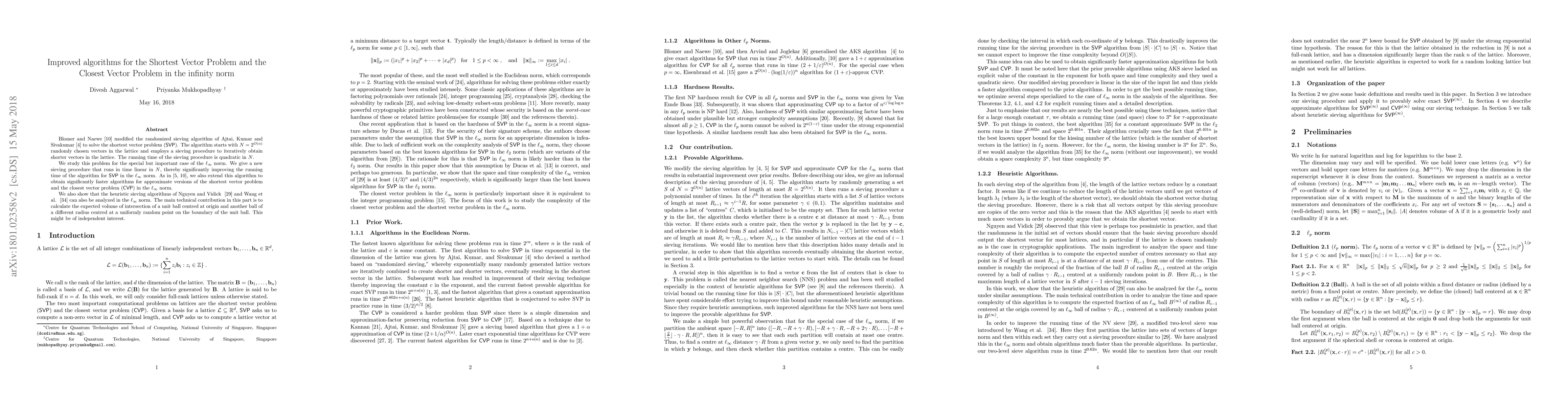Blomer and Naewe[BN09] modified the randomized sieving algorithm of Ajtai, Kumar and Sivakumar[AKS01] to solve the shortest vector problem (SVP). The algorithm starts with $N = 2^{O(n)}$ randomly chosen vectors in the lattice and employs a sieving procedure to iteratively obtain shorter vectors in the lattice. The running time of the sieving procedure is quadratic in $N$. We study this problem for the special but important case of the $\ell_\infty$ norm. We give a new sieving procedure that runs in time linear in $N$, thereby significantly improving the running time of the algorithm for SVP in the $\ell_\infty$ norm. As in [AKS02,BN09], we also extend this algorithm to obtain significantly faster algorithms for approximate versions of the shortest vector problem and the closest vector problem (CVP) in the $\ell_\infty$ norm. We also show that the heuristic sieving algorithms of Nguyen and Vidick[NV08] and Wang et al.[WLTB11] can also be analyzed in the $\ell_{\infty}$ norm. The main technical contribution in this part is to calculate the expected volume of intersection of a unit ball centred at origin and another ball of a different radius centred at a uniformly random point on the boundary of the unit ball. This might be of independent interest.