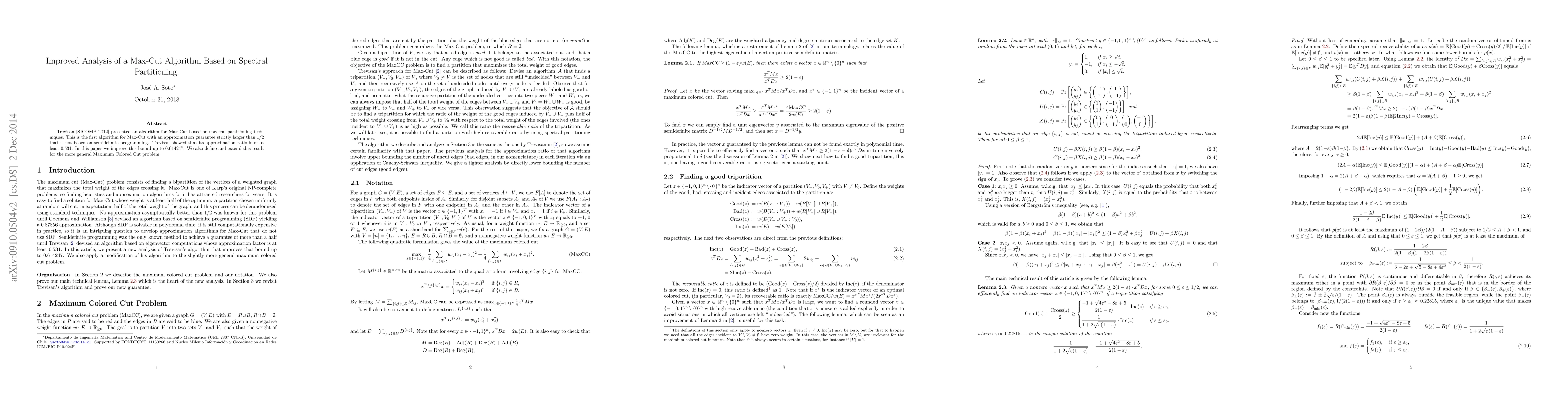 This paper enhances the spectral partitioning-based Max-Cut algorithm by Trevisan, improving its approximation ratio from 0.531 to 0.614247. The authors extend these improvements to the Maximum Colored Cut problem as well.