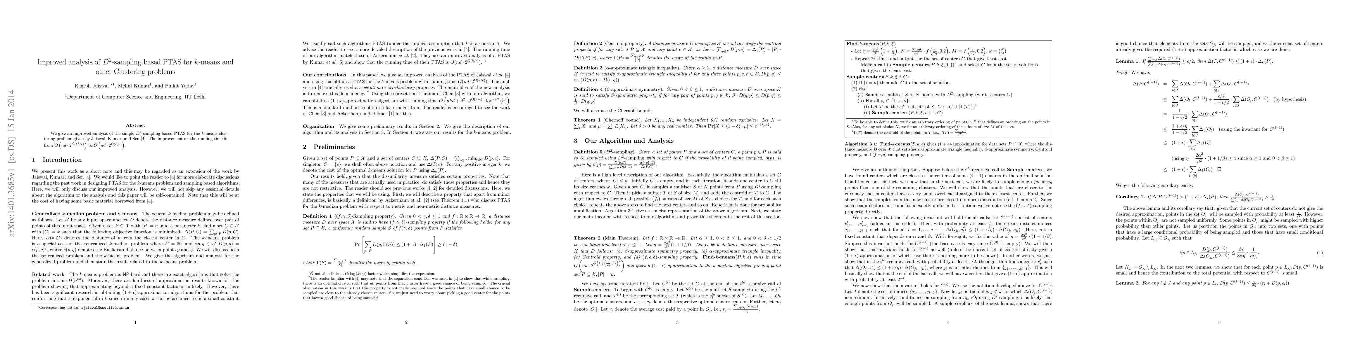 This paper improves the analysis of a D2-sampling based algorithm for k-means clustering, reducing the running time from O(nd * 2^(O(k^2/ε))) to O(nd * 2^(O(k/ε)).