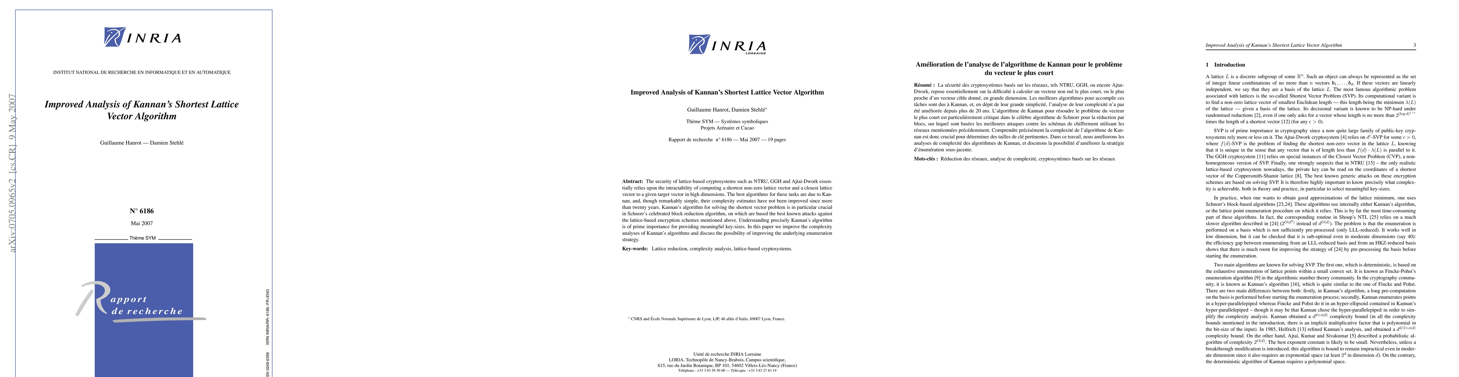 This paper refines the complexity analyses of Kannan's algorithms for solving the shortest and closest lattice vector problems, which are fundamental to the security of lattice-based cryptosystems. The authors discuss potential enhancements to the underlying enumeration strategy to improve these crucial algorithms.
