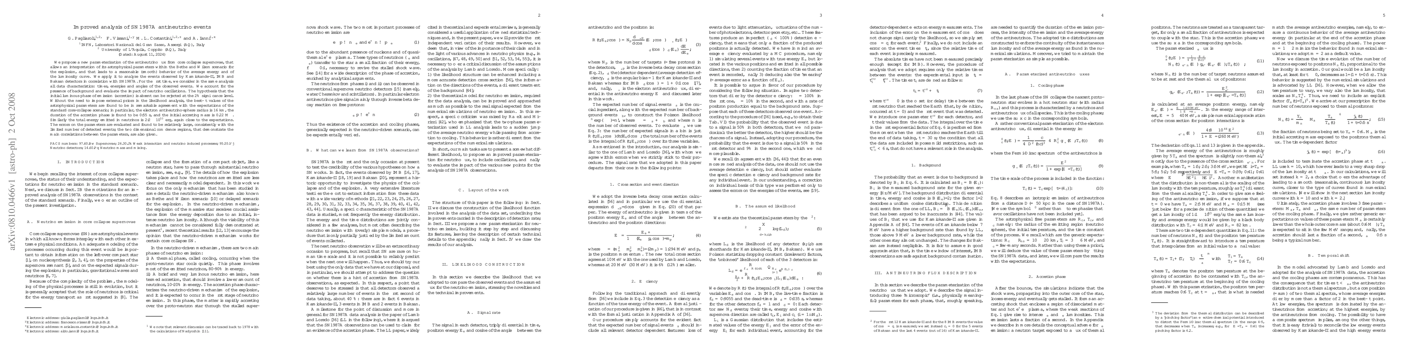 Researchers improved analysis of SN1987A antineutrino events, finding agreement with standard core-collapse scenario parameters, including electron antineutrino-sphere radius and total energy emitted in neutrinos.