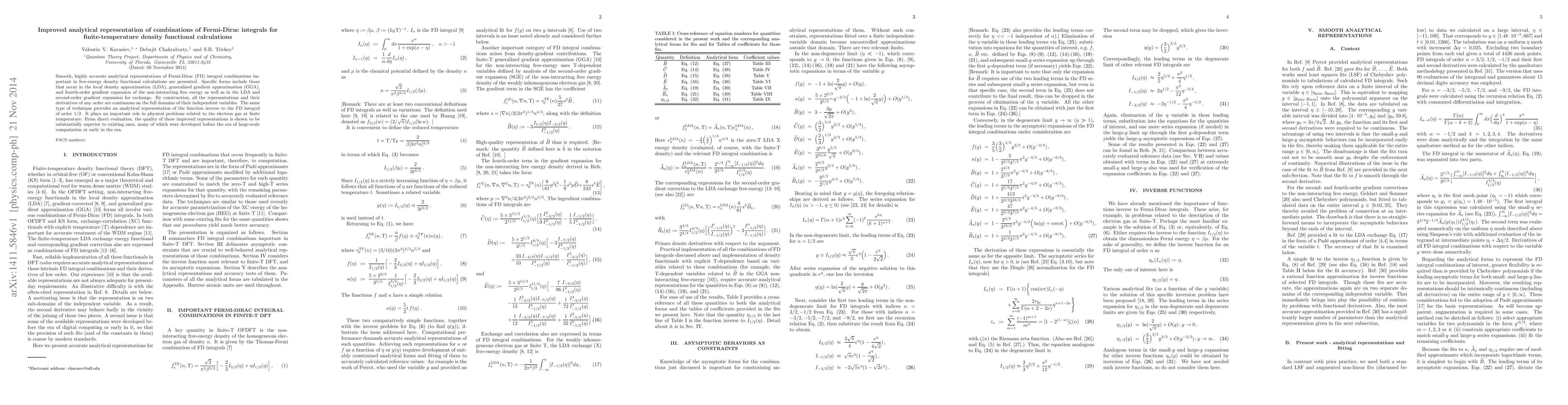 Smooth, highly accurate analytical representations of Fermi-Dirac (FD) integral combinations important in free-energy density functional calculations are presented. Specific forms include those that occur in the local density approximation (LDA), generalized gradient approximation (GGA), and fourth-order gradient expansion of the non-interacting free energy as well as in the LDA and second-order gradient expansion for exchange. By construction, all the representations and their derivatives of any order are continuous on the full domains of their independent variables. The same type of technique provides an analytical representation of the function inverse to the FD integral of order $1/2$. It plays an important role in physical problems related to the electron gas at finite temperature. From direct evaluation, the quality of these improved representations is shown to be substantially superior to existing ones, many of which were developed before the era of large-scale computation or early in the era.