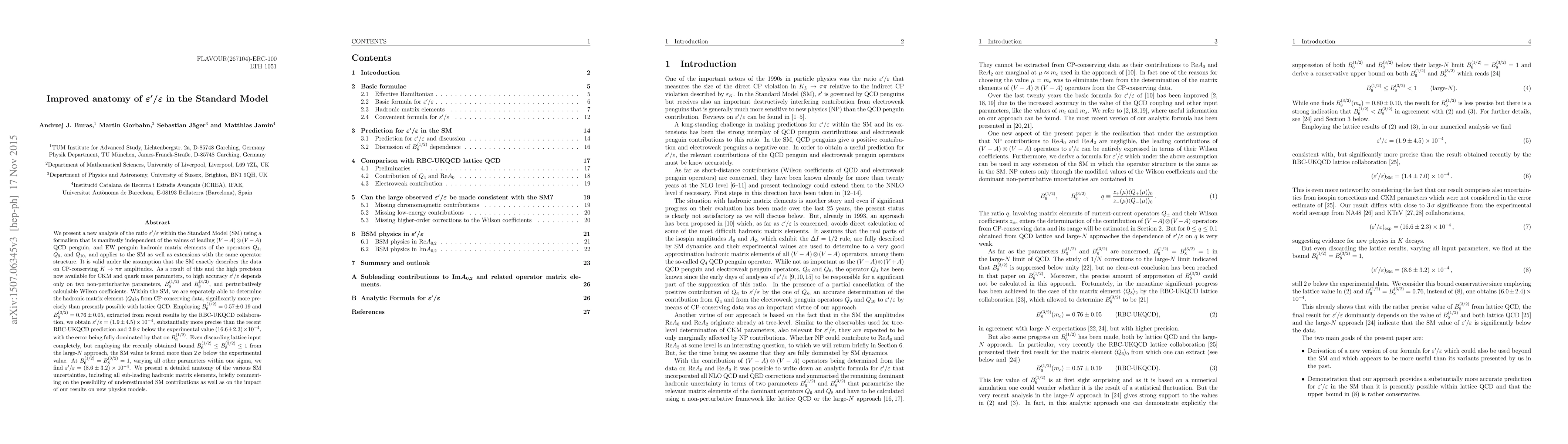 This paper refines the ratio epsilon'/epsilon within the Standard Model using a new formalism independent of QCD and EW penguin parameters, yielding a more precise prediction of (1.9±4.5)×10^-4, which is significantly lower than the current experimental value. The authors discuss the uncertainties and implications for new physics models.