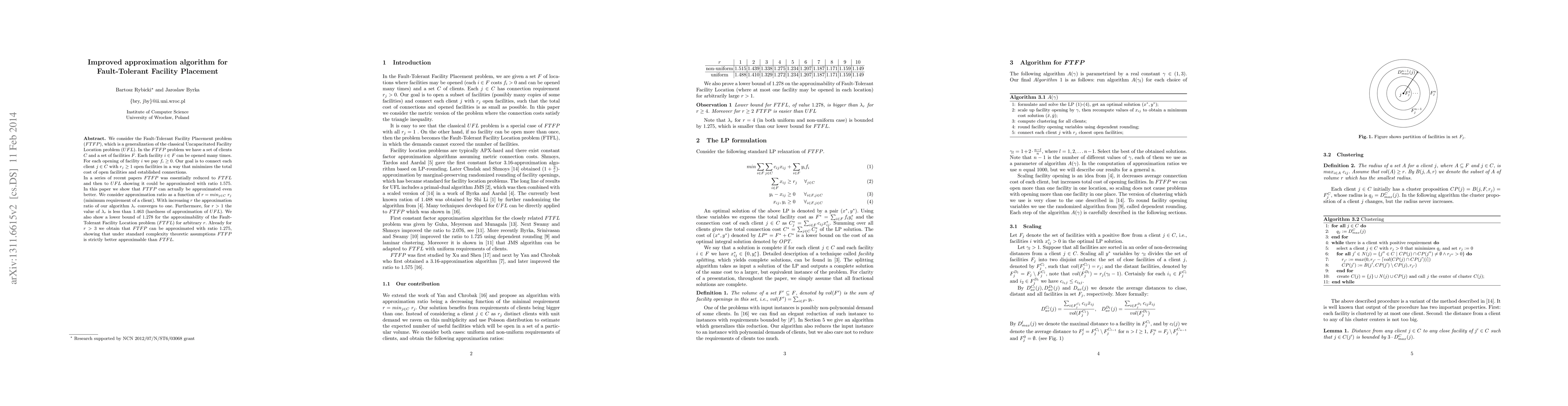 This paper presents an improved approximation algorithm for Fault-Tolerant Facility Placement ($FTFP$), achieving an approximation ratio $\lambda_r$ that converges to one as the minimum client requirement $r$ increases. For $r > 1$, the ratio is shown to be less than 1.463, surpassing the hardness of approximation for the Uncapacitated Facility Location problem.