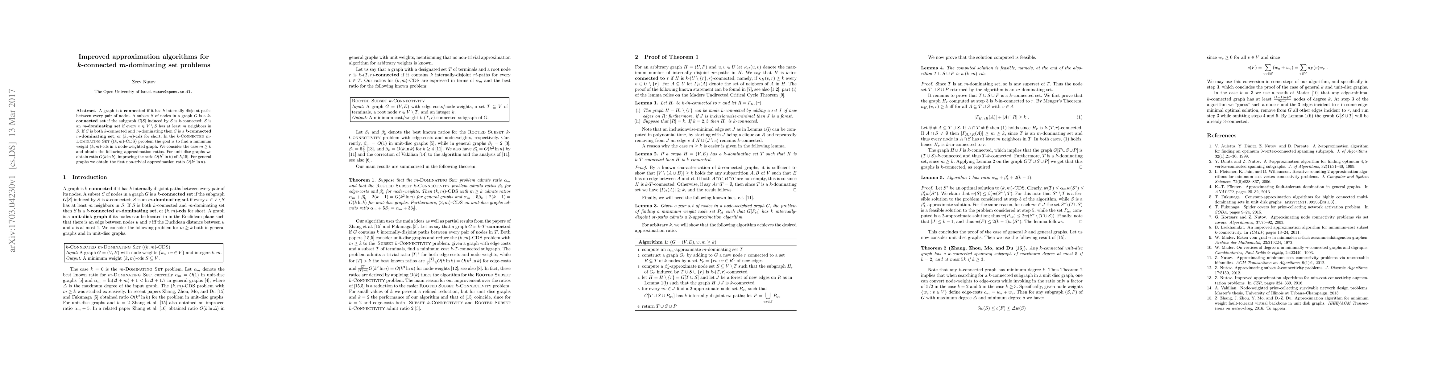 A graph is $k$-connected if it has $k$ internally-disjoint paths between every pair of nodes. A subset $S$ of nodes in a graph $G$ is a $k$-connected set if the subgraph $G[S]$ induced by $S$ is $k$-connected; $S$ is an $m$-dominating set if every $v \in V \setminus S$ has at least $m$ neighbors in $S$. If $S$ is both $k$-connected and $m$-dominating then $S$ is a $k$-connected $m$-dominating set, or $(k,m)$-cds for short. In the $k$-Connected $m$-Dominating Set ($(k,m)$-CDS) problem the goal is to find a minimum weight $(k,m)$-cds in a node-weighted graph. We consider the case $m \geq k$ and obtain the following approximation ratios. For unit disc-graphs we obtain ratio $O(k\ln k)$, improving the previous ratio $O(k^2 \ln k)$. For general graphs we obtain the first non-trivial approximation ratio $O(k^2 \ln n)$.