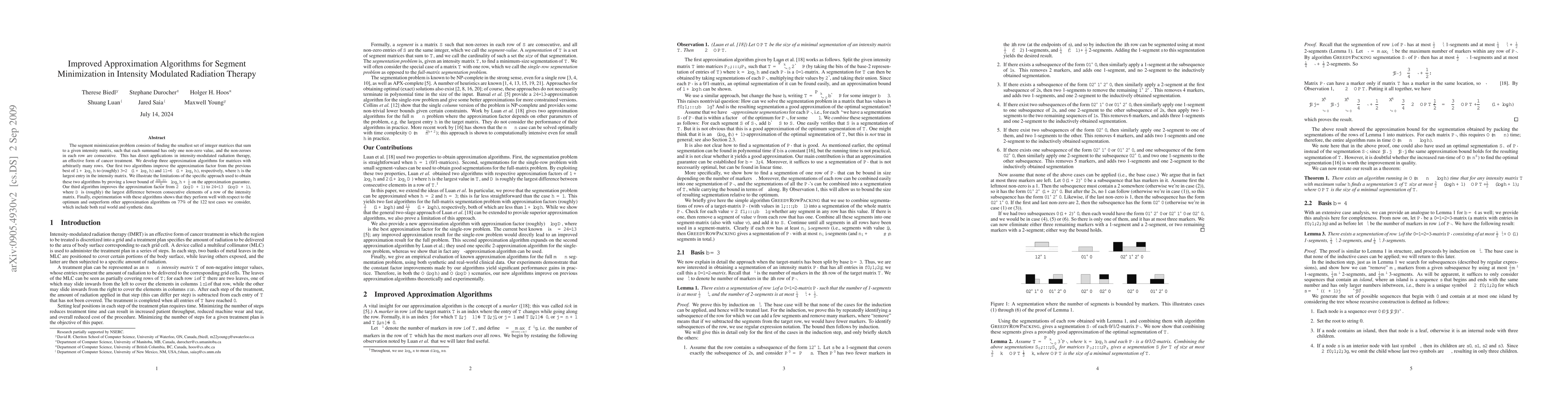 Researchers developed three approximation algorithms for segment minimization in intensity-modulated radiation therapy, improving the approximation factor and outperforming existing algorithms on 77% of test cases.