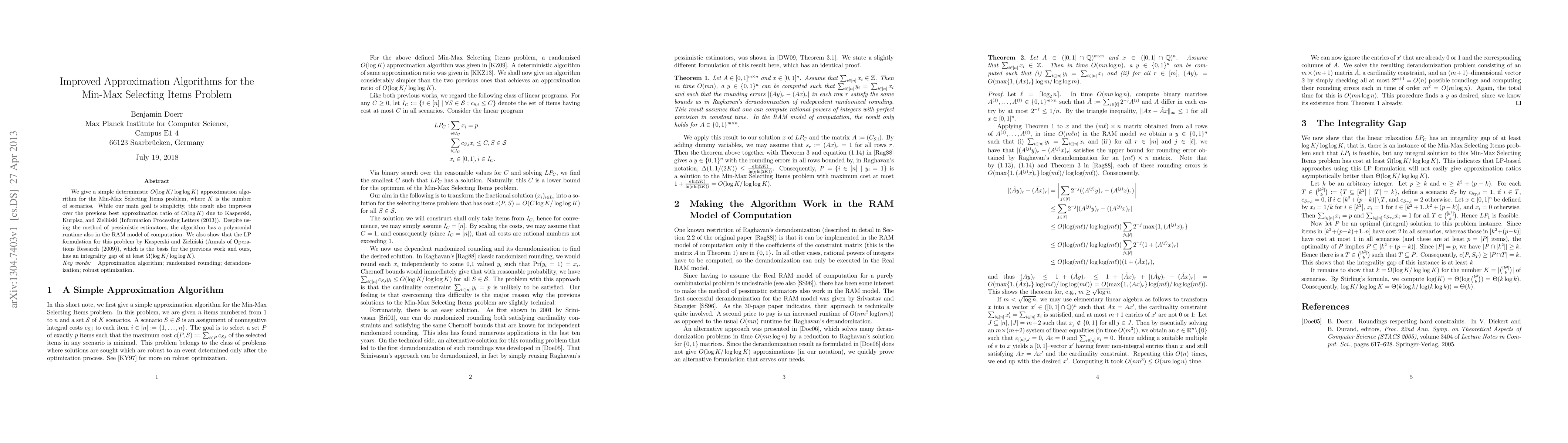 Researchers have developed a simple yet efficient algorithm to solve the Min-Max Selecting Items problem with an approximation ratio of $O(rac{ ext{log K}}{ ext{log log K}})$, improving upon previous results.