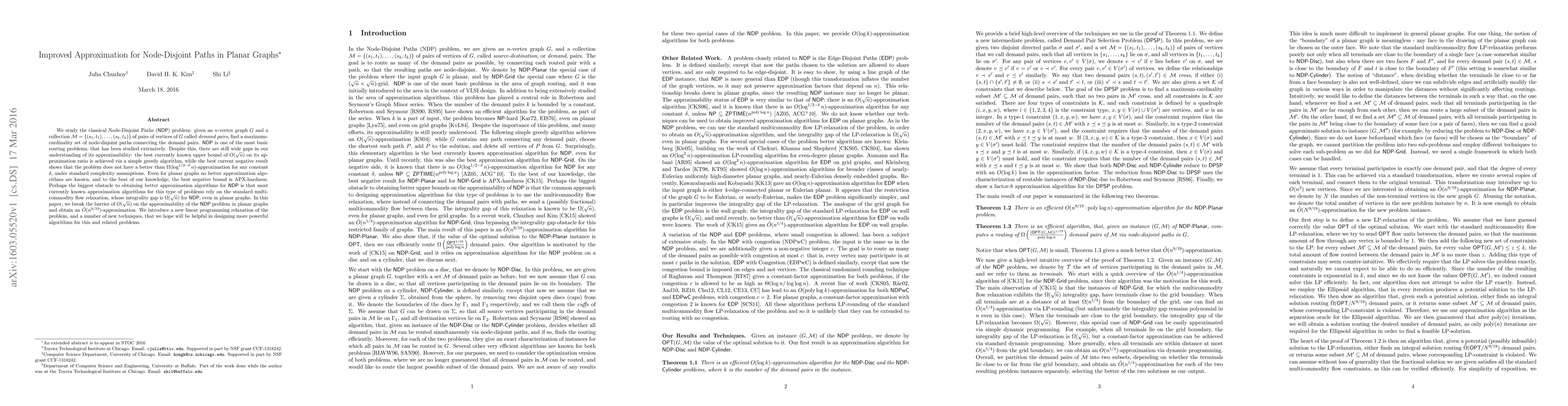 This paper improves the approximation ratio for the Node-Disjoint Paths problem in planar graphs, achieving an $\tilde O(n^{9/19})$-approximation, breaking the previous $O(\sqrt n)$ barrier. The authors introduce a new linear programming relaxation and novel techniques to overcome the limitations of existing multicommodity flow approaches.