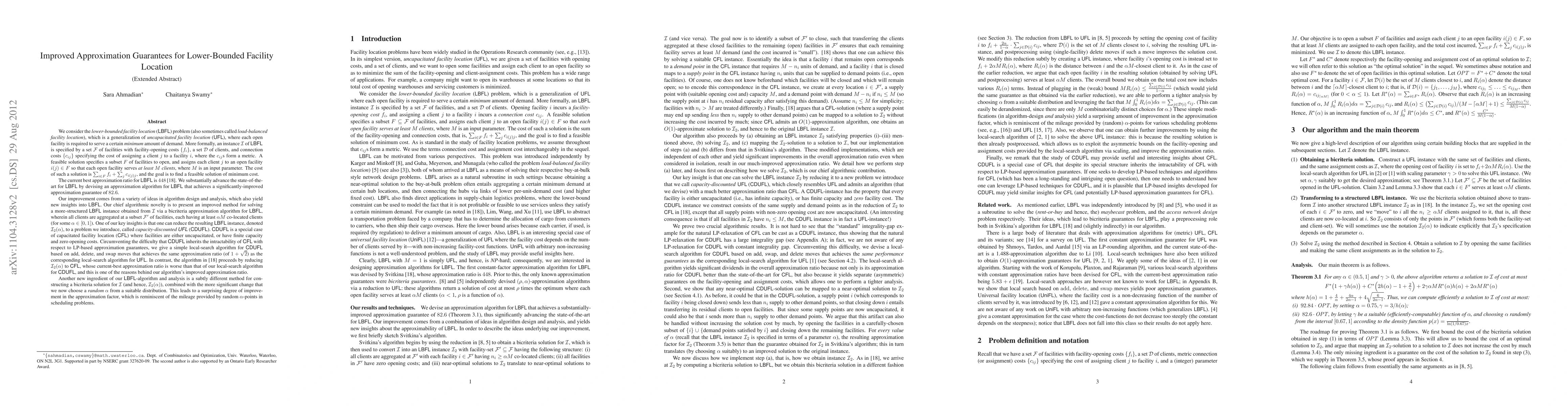 Researchers developed a new algorithm that improves upon existing methods for the Lower-Bounded Facility Location problem, achieving an approximation guarantee of 82.6, a significant improvement over the previous best ratio of 448.