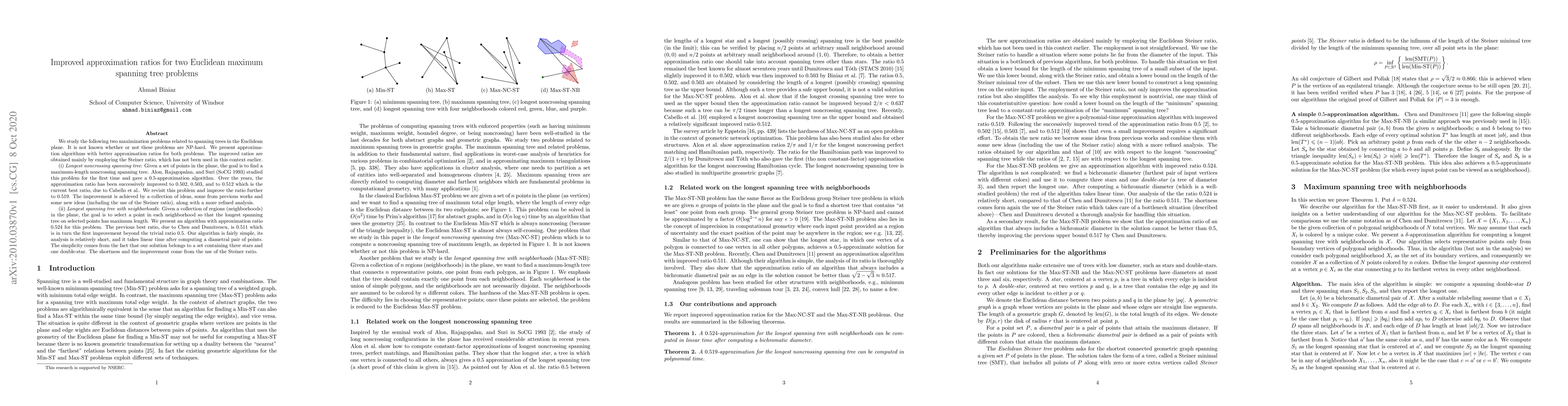 This paper presents improved approximation algorithms for two Euclidean maximum spanning tree problems, achieving better ratios by utilizing the Steiner ratio. The first problem, the longest noncrossing spanning tree, now has a best approximation ratio of 0.519, surpassing previous bests. The second problem, longest spanning tree with neighborhoods, achieves a new ratio of 0.524, improving on the previous best of 0.511.