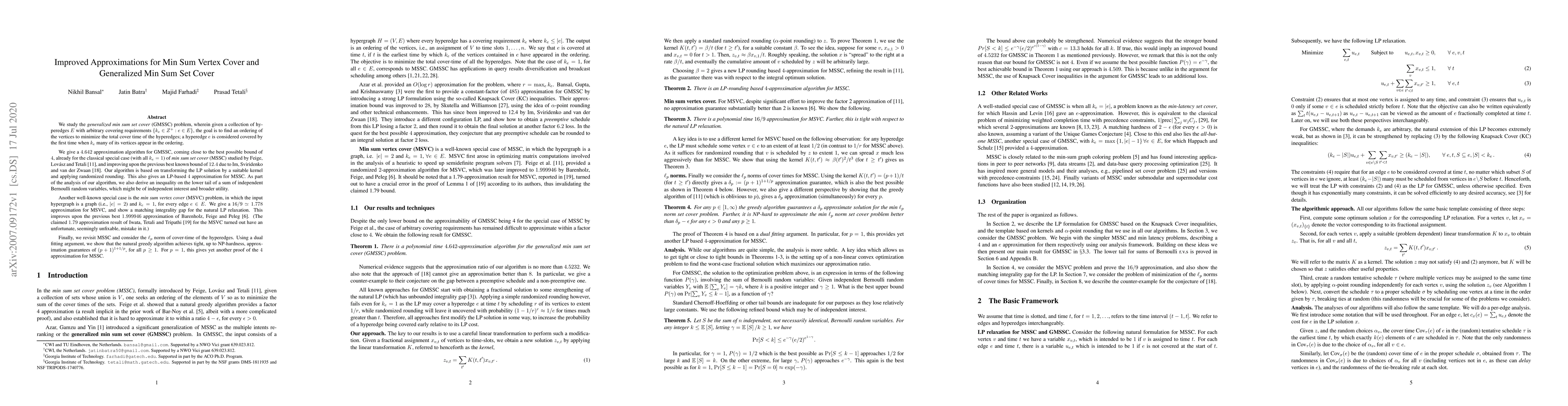 This paper presents improved approximation algorithms for the generalized min sum set cover (GMSSC) problem and the min sum vertex cover (MSVC) problem, achieving better bounds than previous results with various special cases of these problems.