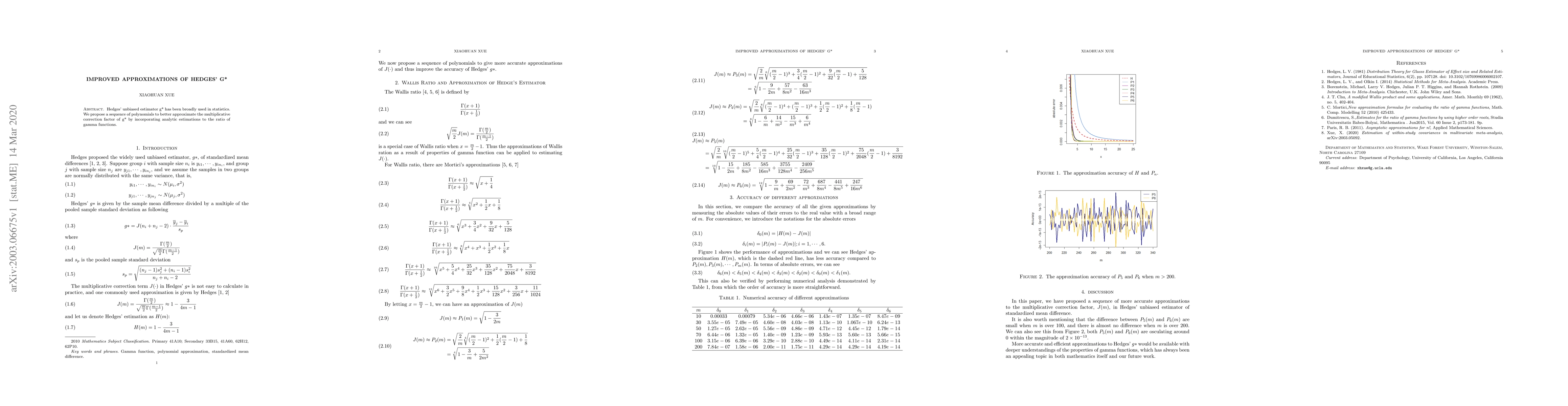 Hedges' unbiased estimator g* has been broadly used in statistics. We propose a sequence of polynomials to better approximate the multiplicative correction factor of g* by incorporating analytic estimations to the ratio of gamma functions.