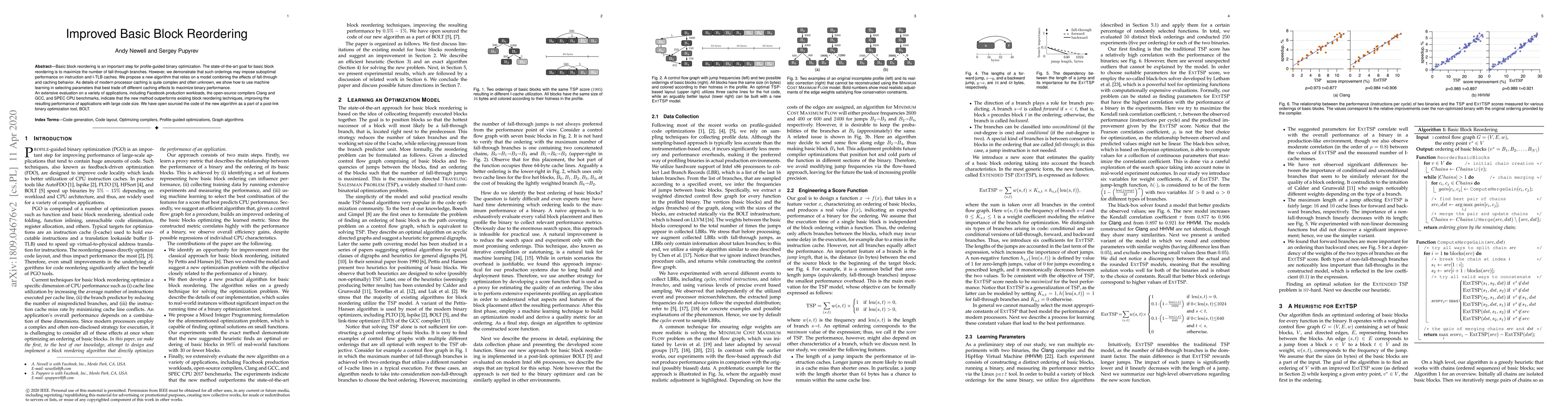 This research proposes a new basic block reordering algorithm that balances fall-through branches and caching effects, improving performance for large code-sized applications. Evaluations show it outperforms existing techniques, and the code has been open-sourced as part of the BOLT post-link optimization tool.