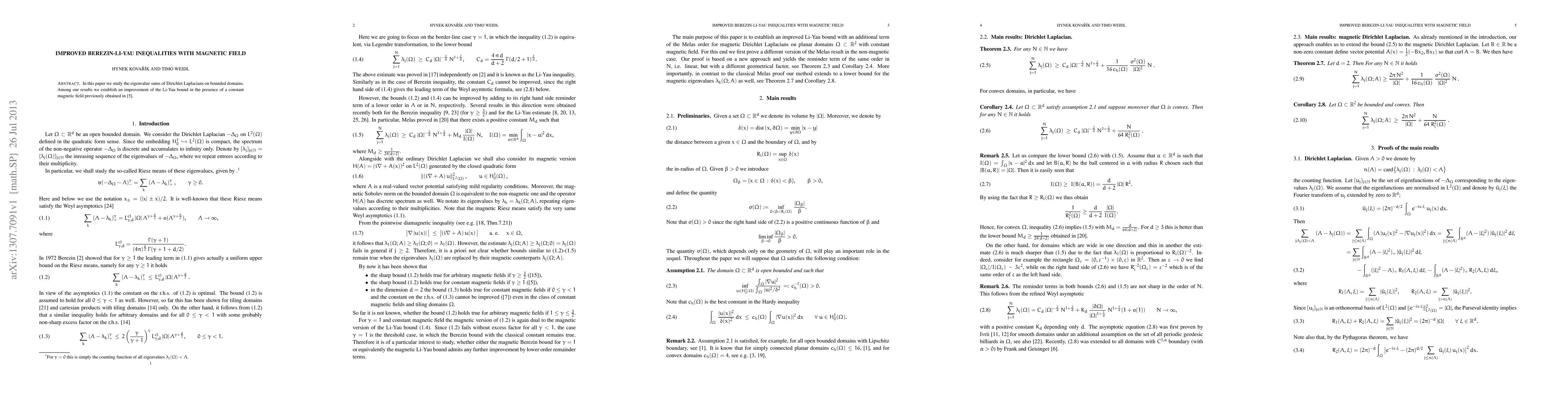 This paper improves Berezin-Li-Yau inequalities in the presence of a magnetic field, leading to new insights into eigenvalue sums of Dirichlet Laplacians on bounded domains.