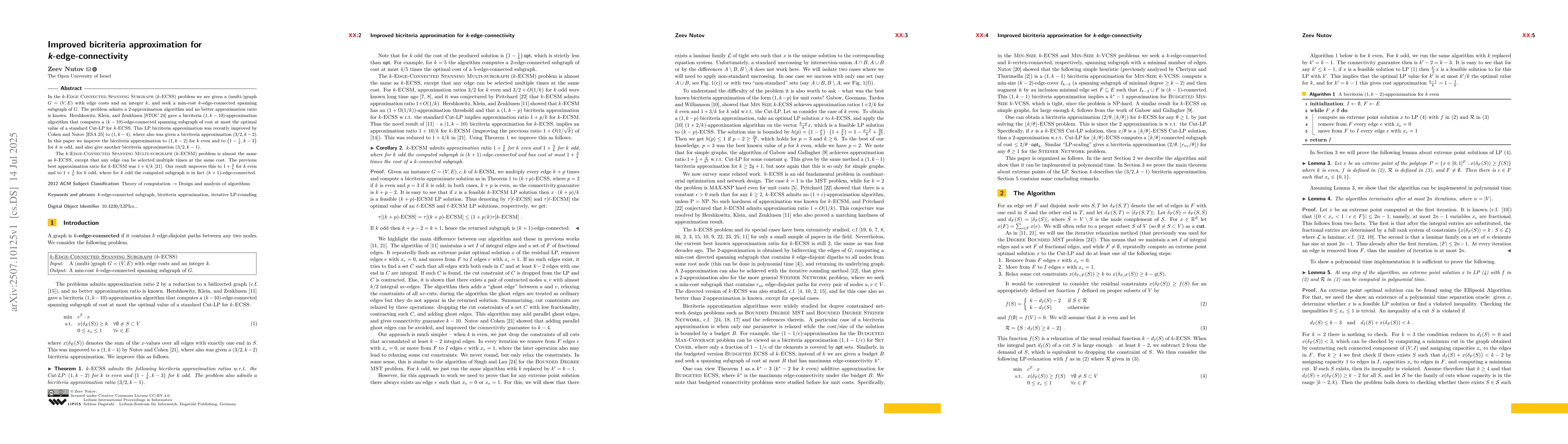 In the $k$-Edge Connected Spanning Subgraph ($k$-ECSS) problem we are given a (multi-)graph $G=(V,E)$ with edge costs and an integer $k$, and seek a min-cost $k$-edge-connected spanning subgraph of $G$. The problem admits a $2$-approximation algorithm and no better approximation ratio is known.Hershkowitz, Klein, and Zenklusen [STOC 24] gave a bicriteria $(1,k-10)$-approximation algorithm that computes a $(k-10)$-edge-connected spanning subgraph of cost at most the optimal value of a standard Cut-LP for $k$-ECSS. This LP bicriteria approximation was recently improved by Cohen and Nutov [ESA 25] to $(1,k-4)$, where also was given a bicriteria approximation $(3/2,k-2)$. In this paper we improve the bicriteria approximation to $(1,k-2)$ for $k$ even and to $\left(1-\frac{1}{k},k-3\right)$ for $k$ is odd, and also give another bicriteria approximation $(3/2,k-1)$. The $k$-Edge-Connected Spanning Multi-subgraph ($k$-ECSM) problem is almost the same as $k$-ECSS, except that any edge can be selected multiple times at the same cost. The previous best approximation ratio for $k$-ECSM was $1+4/k$. Our result improves this to $1+\frac{2}{k}$ for $k$ even and to $1+\frac{3}{k}$ for $k$ odd, where for $k$ odd the computed subgraph is in fact $(k+1)$-edge-connected.