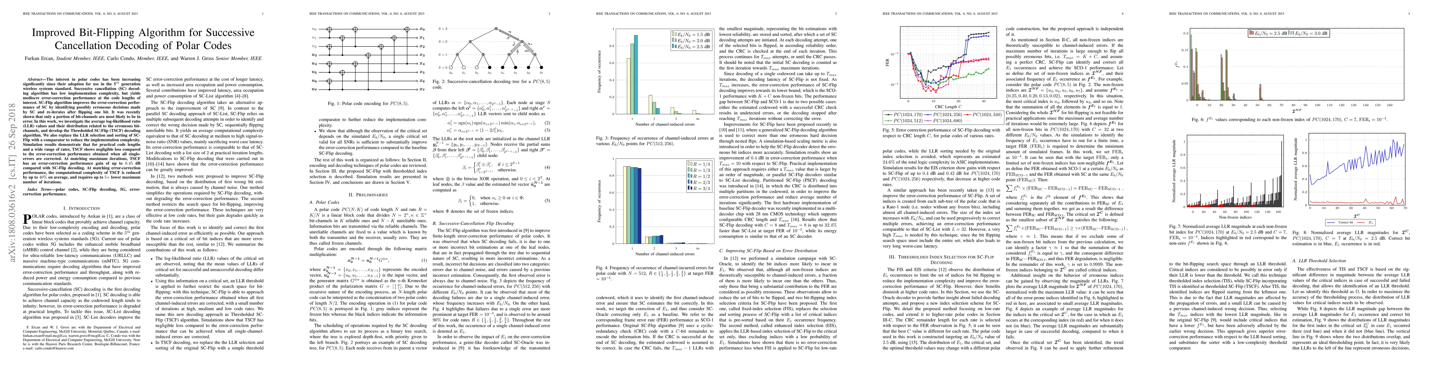 The Thresholded SC-Flip (TSCF) algorithm improves the error-correction performance of successive cancellation decoding of polar codes with up to 0.45 dB gain and reduced computational complexity by 40%.