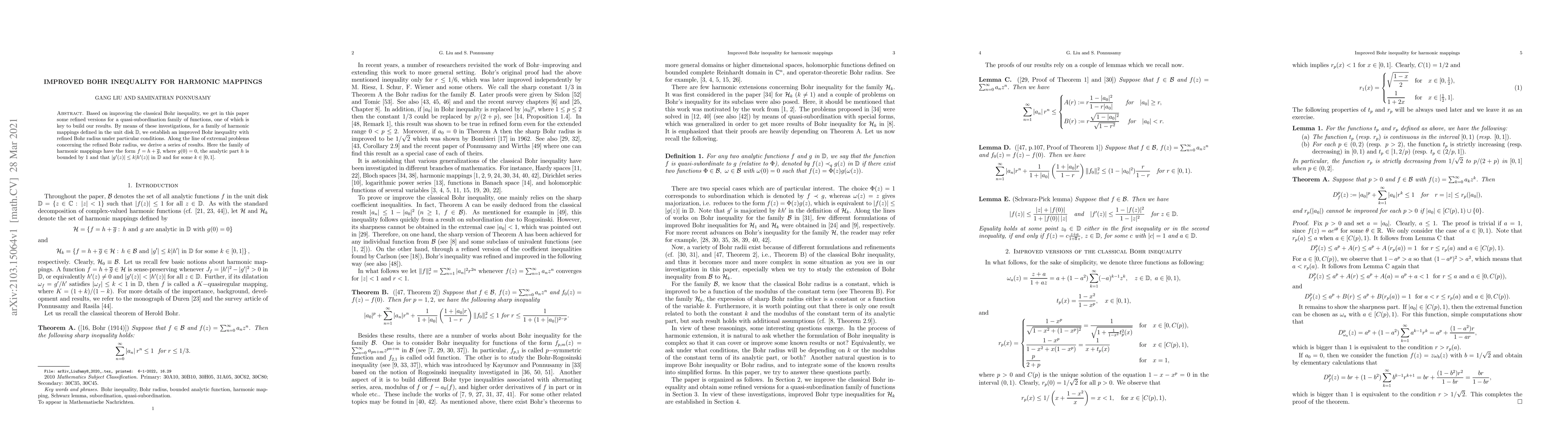 This paper refines the classical Bohr inequality for a quasi-subordination family of functions, establishing an improved Bohr inequality for harmonic mappings in the unit disk under specific conditions. The results are derived through extremal problems concerning the refined Bohr radius.