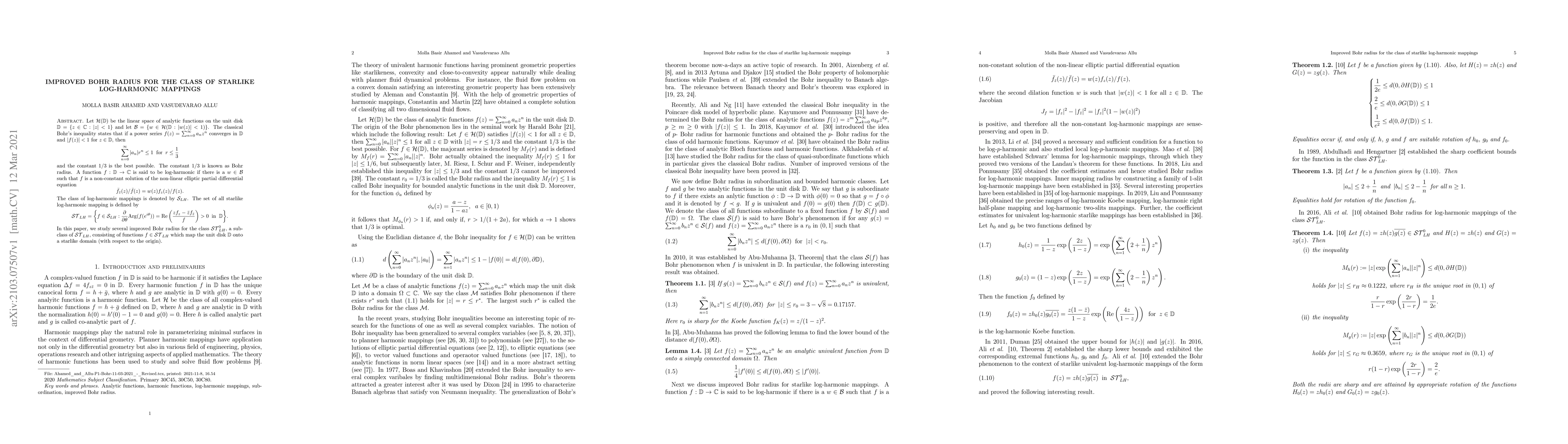 Let $ \mathcal{H}(\mathbb{D}) $ be the linear space of analytic functions on the unit disk $ \mathbb{D}=\{z\in\mathbb{C}: |z|<1\} $ and let $ \mathcal{B}=\{w\in \mathcal{H}(\mathbb{D}: |w(z)|<1)\} $. The classical Bohr's inequality states that if a power series $ f(z)=\sum_{n=0}^{\infty}a_nz^n $ converges in $ \mathbb{D} $ and $ |f(z)|<1 $ for $ z\in\mathbb{D} $, then \begin{equation*} \sum_{n=0}^{\infty}|a_n|r^n\leq 1\;\;\mbox{for}\;\; r\leq \frac{1}{3} \end{equation*} and the constant $ 1/3 $ is the best possible. The constant $ 1/3 $ is known as Bohr radius. A function $ f : \mathbb{D}\rightarrow\mathbb{C} $ is said to be log-harmonic if there is a $ w\in\mathcal{B} $ such that $ f $ is a non-constant solution of the non-linear elliptic partial differential equation \begin{equation*} \bar{f}_{\bar{z}}(z)/\bar{f}(z)=w(z)f_{z}(z)/f(z). \end{equation*} The class of log-harmonic mappings is denoted by $ \mathcal{S}_{LH} $. The set of all starlike log-harmonic mapping is defined by \begin{equation*} \mathcal{ST}_{LH}=\bigg\{f\in\mathcal{S}_{LH}:\frac{\partial}{\partial\theta}{\rm Arg}(f(e^{i\theta}))={\rm Re}\left(\frac{zf_{z}-\bar{z}f_{\bar{z}}}{f}\right)>0\;\; \mbox{in}\;\; \mathbb{D}\bigg\}. \end{equation*} In this paper, we study several improved Bohr radius for the class $ \mathcal{ST}^{0}_{LH} $, a subclass of $ \mathcal{ST}_{LH} $, consisting of functions $ f\in\mathcal{ST}_{LH} $ which map the unit disk $ \mathbb{D} $ onto a starlike domain (with respect to the origin).