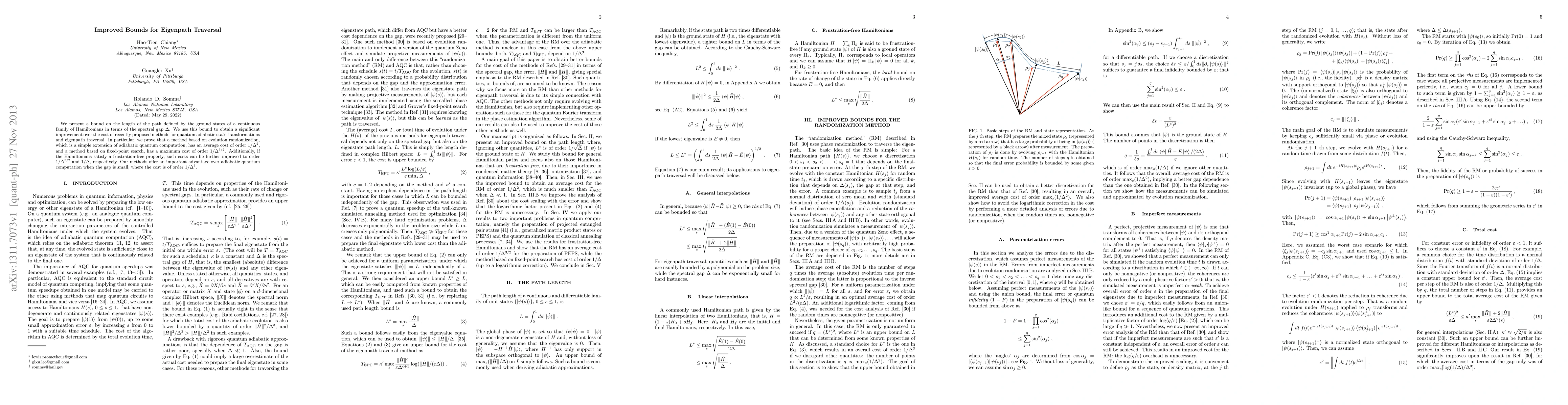 This paper presents improved bounds for eigenpath traversal, showing that methods based on evolution randomization and fixed-point search achieve costs of order 1/G^2 and 1/G^(3/2), respectively, significantly outperforming traditional adiabatic quantum computation, especially when the spectral gap G is small.